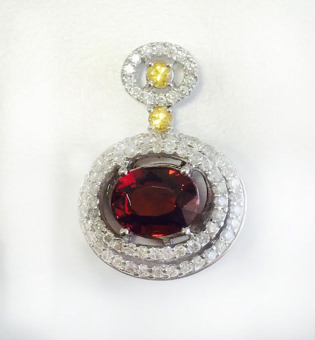 YELLOW SAPPHIRE 0.26CT / MAYALA GARNET 4.22CT, 14K W/G PENDANT 5.73GRAM / DIAMOND 0.66CT