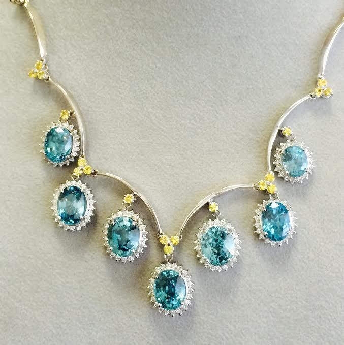 YELLOW SAPPHIRE 1.28CT / BLUE ZIRCON 39.66CT, 14K W/G NECKLACE 35.85GRAM / DIAMOND 1.98CT