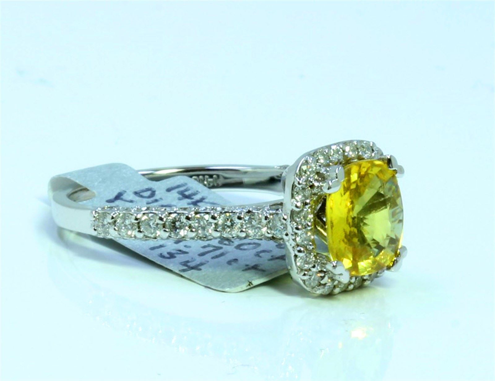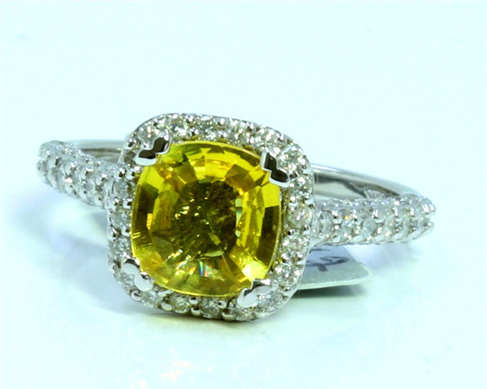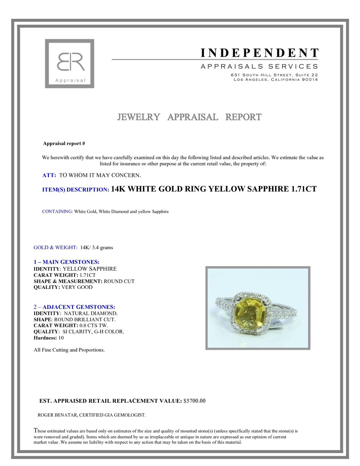 14K WHITE GOLD RING 3.4GRAM / YELLOW SAPPHIRE 1.71CT / WHITE DIAMOND 0.8CT