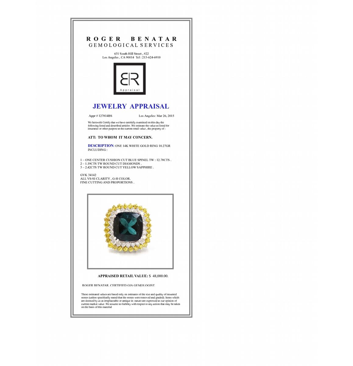 YELLOW SAPPHIRE 2.40CT / BLUE SPINEL 12.78CT, 14K W/G RING 10.27GRAM / DIAMOND RD 1.19CT