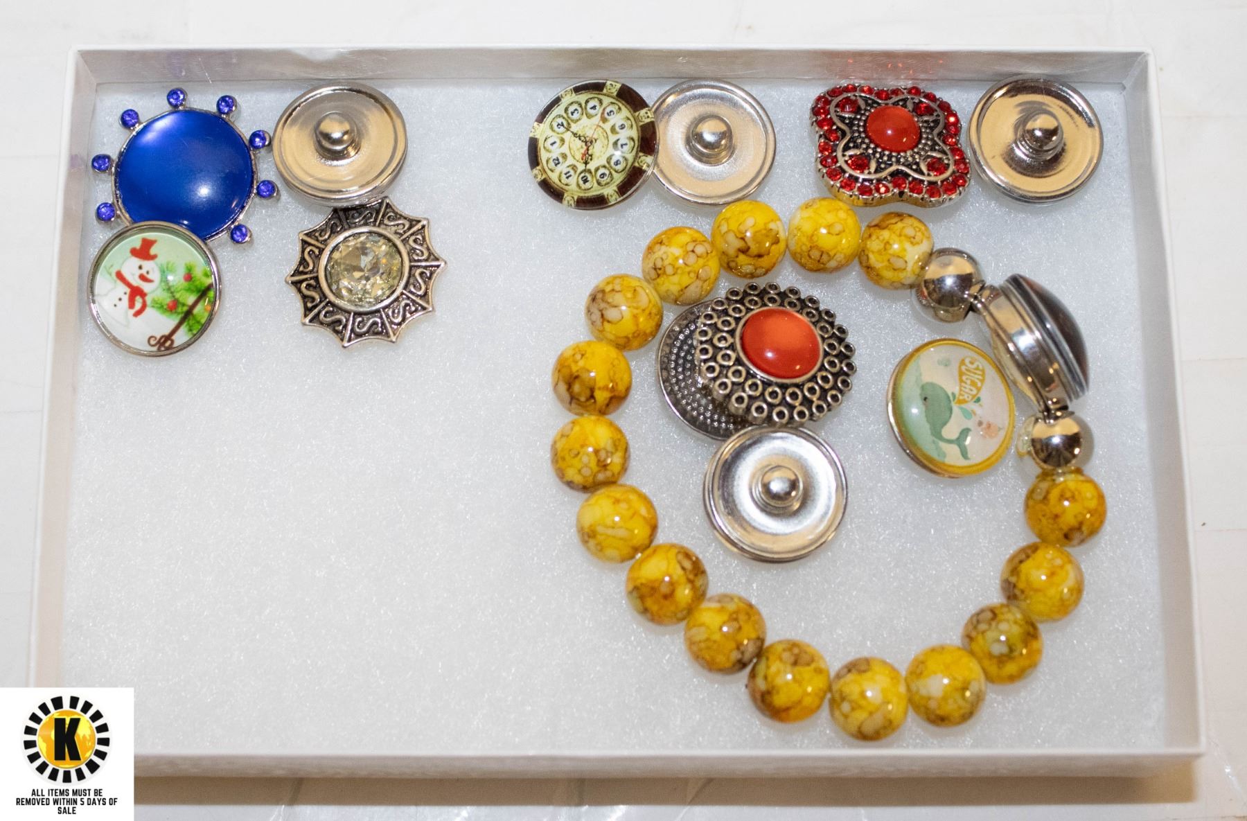 YELLOW SNAP CHARM BRACELET & 13 SNAP CHARMS