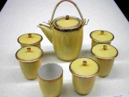 YELLOW TEA SET MADE IN TAIWAN - MISSING LID