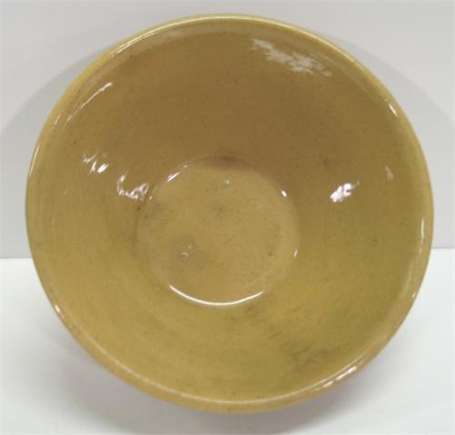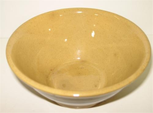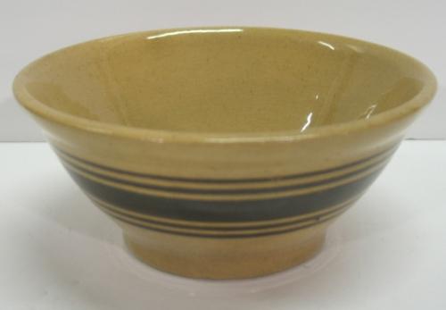 YELLOWARE BOWL. Brown band decoration. Shows signs of crazing. 3” H, 7” Dia.