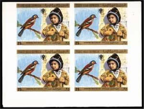 1980 International Year of the Child 25f to 150f (SG 594-99 var) in imperf bottom marginal blocks of four, fine u/m, scarce