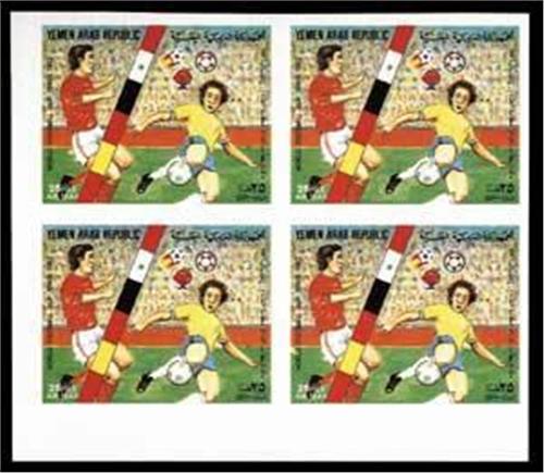 1982 Football World Cup 25f to 125f in matching imperf corner marginal blocks of four (SG 709-714 var) fine u/m
