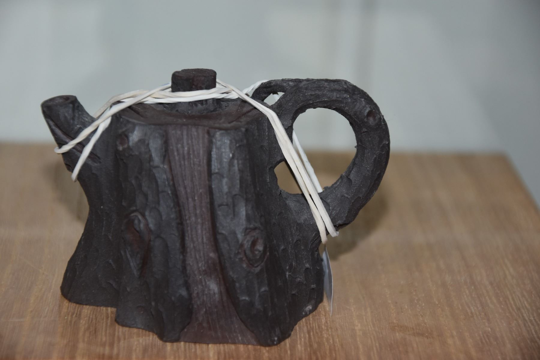 YIXING TEAPOT, TREE STUMP FORM, DARK ZISHA (2 1/2  X 3 1/2  X 2 1/2 )