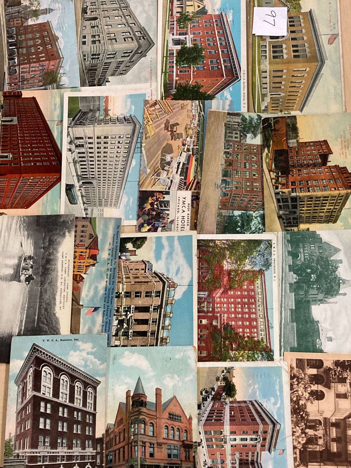 YMCAs from all over. Mostly early to linen with some standard size chrome. Approx. 500 cards. Pictures shown are just a portion of the lot.