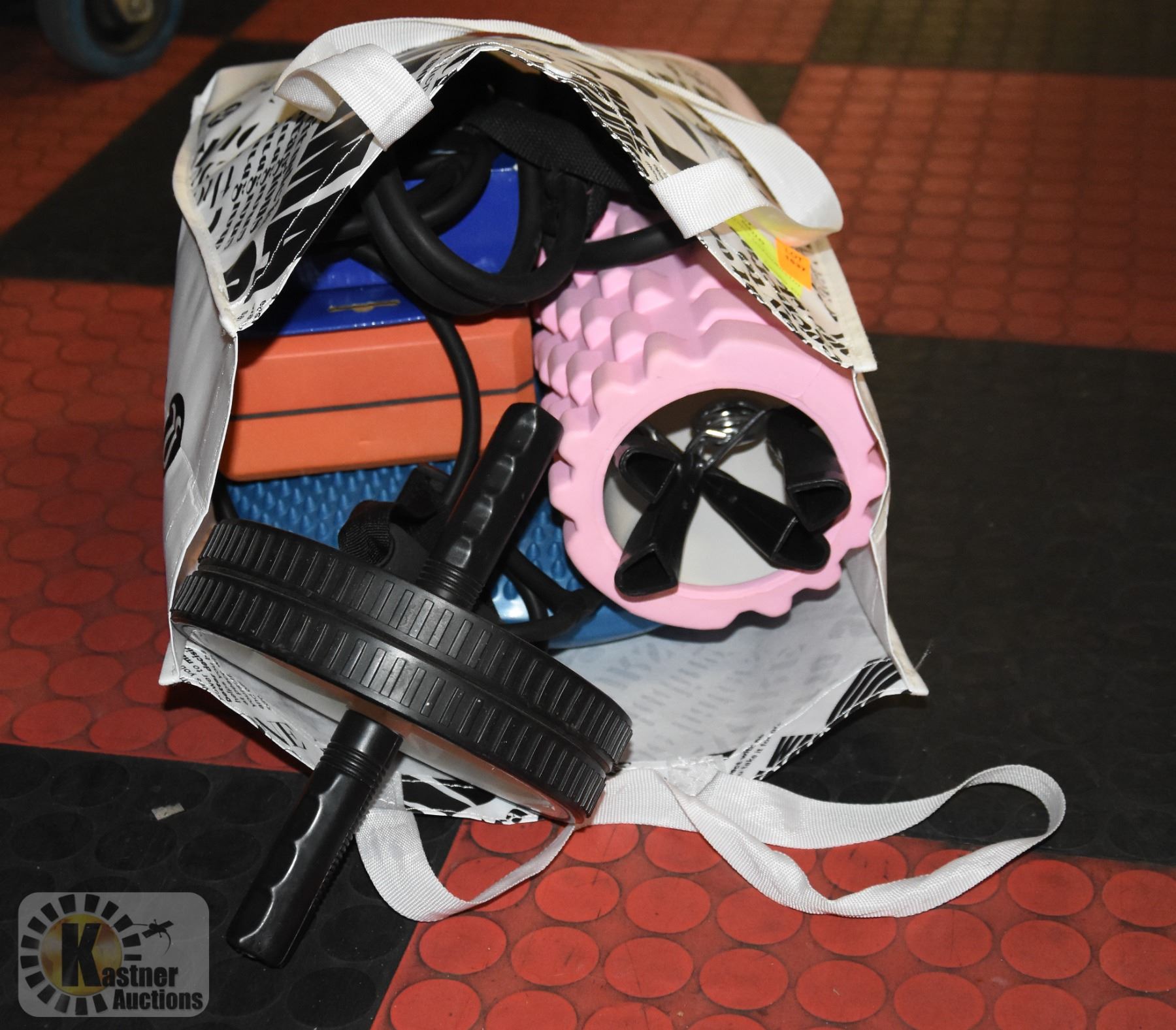 2 LIGHTWEIGHT RESISTANCE BANDS. LULU LEMON YOGA BLOCK. AB ROLLER. 2 HAND GRIPS. SHOULDER PULLEY. FOAM ROLLER. STABILITY CUSHION. ESTATE.-