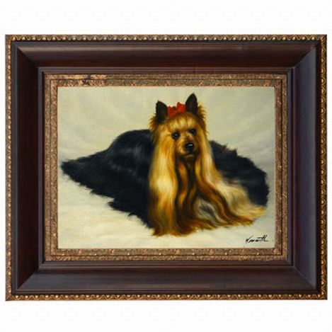"YORKIE" - ORIGINAL HAND PAINTED OIL ON CANVAS - PROFFESSIONALLY FRAMED - IMAGE 12X16" - FRAMED 19X23"