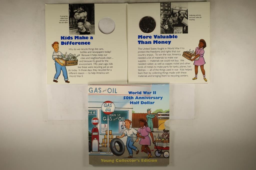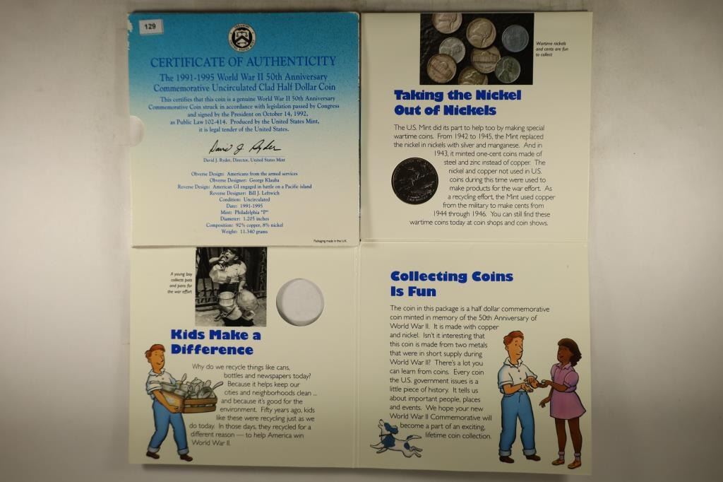 HALF DOLLAR INCLUDES BRILLIANT UNC 1991-95 WWII HALF DOLLAR, ORIGINAL US MINT PACKAGING