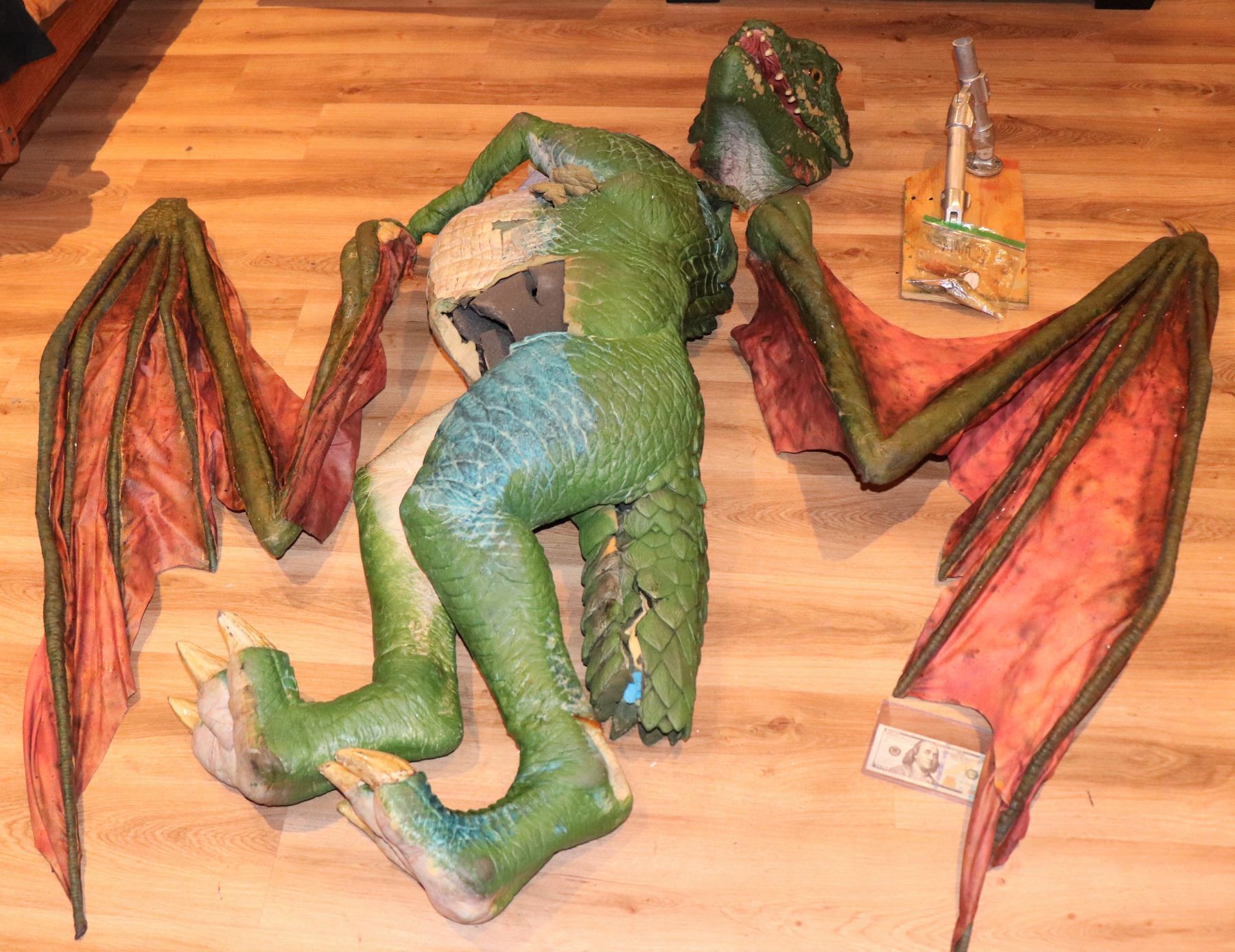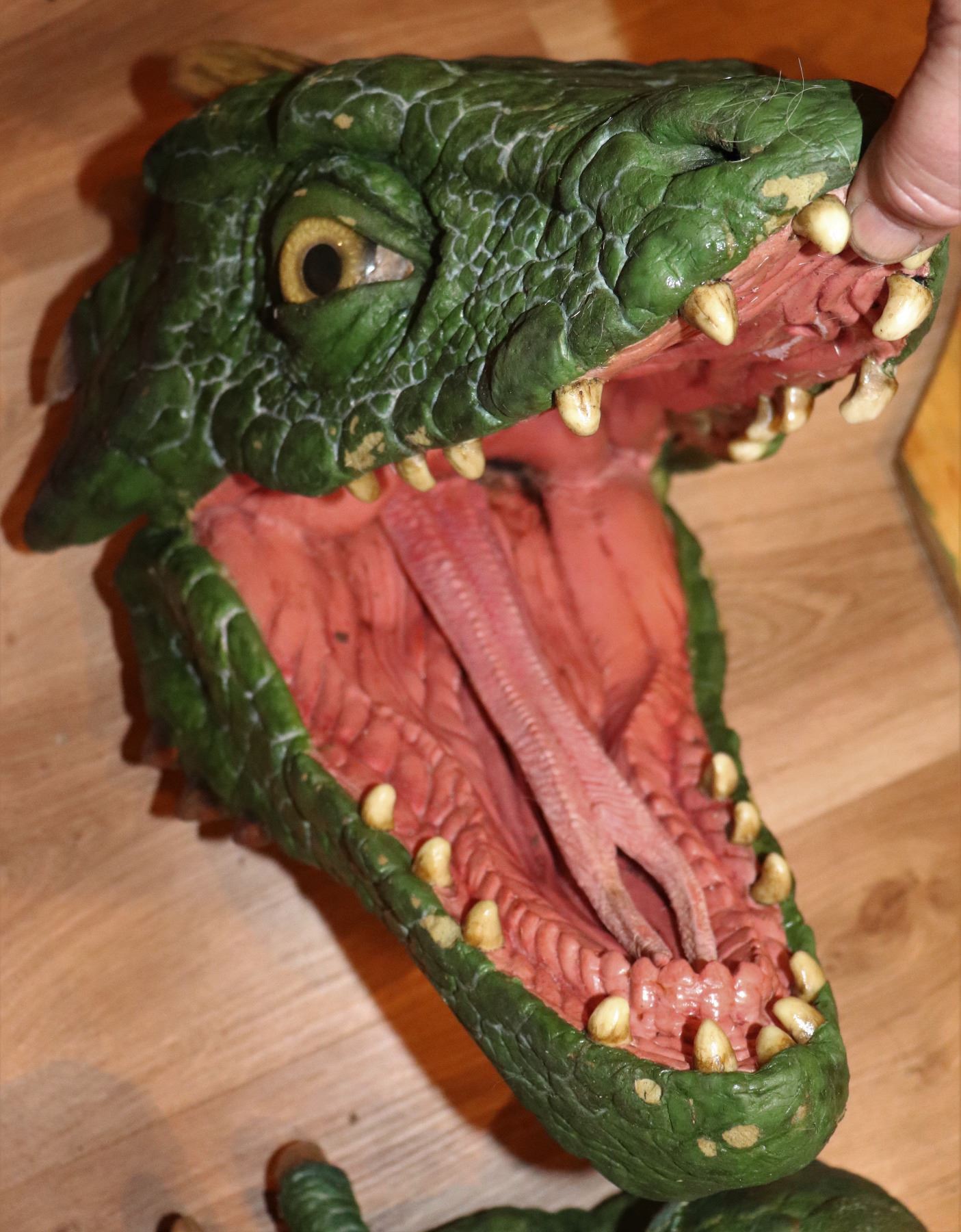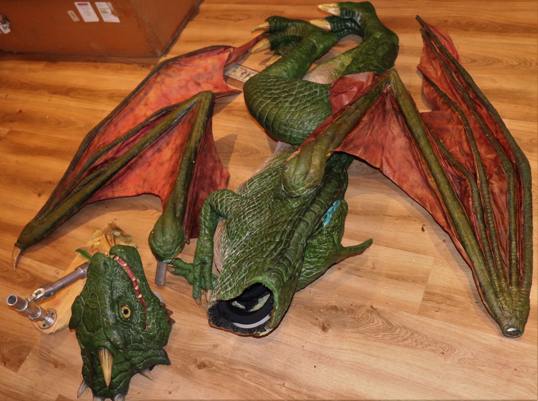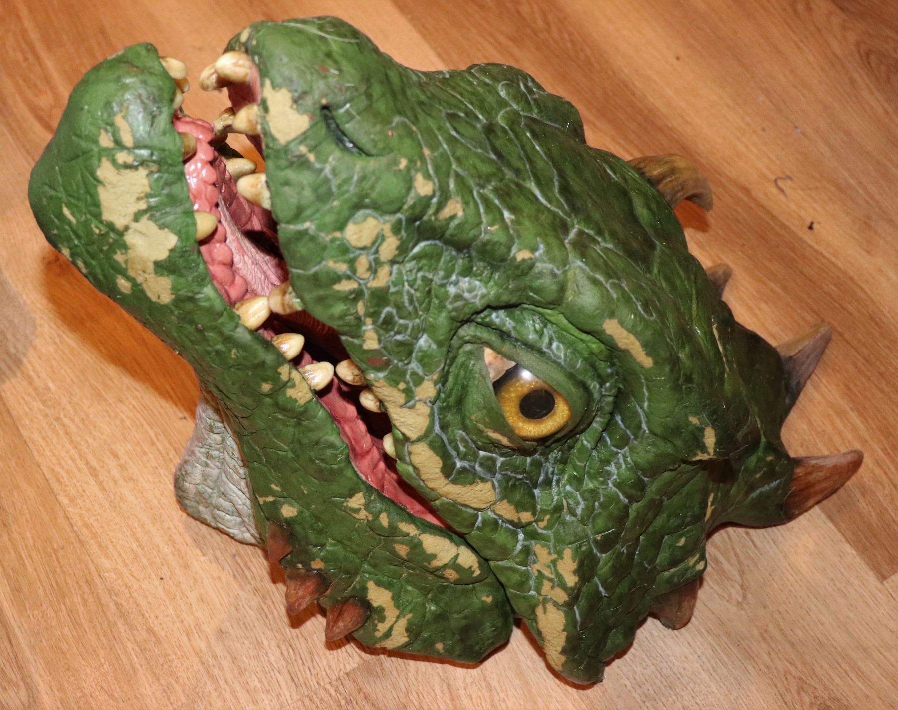 Large scale puppet that held up on some rigging. I removed the mount but it is included. The mouth is hand puppeted.