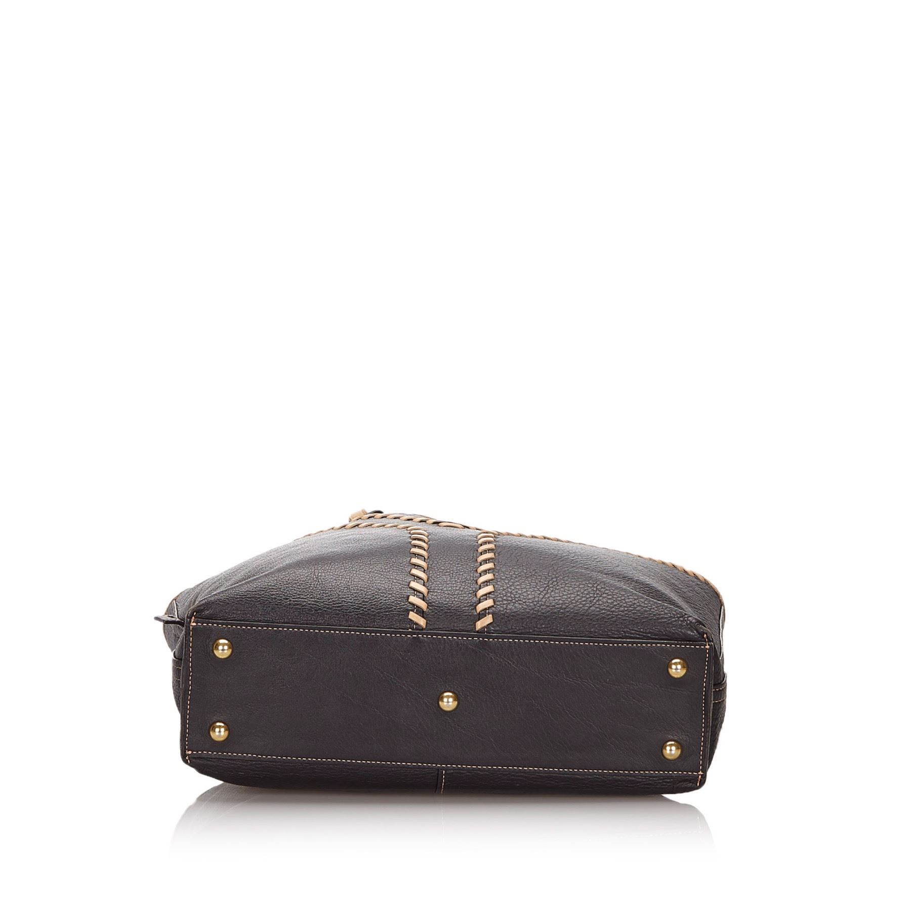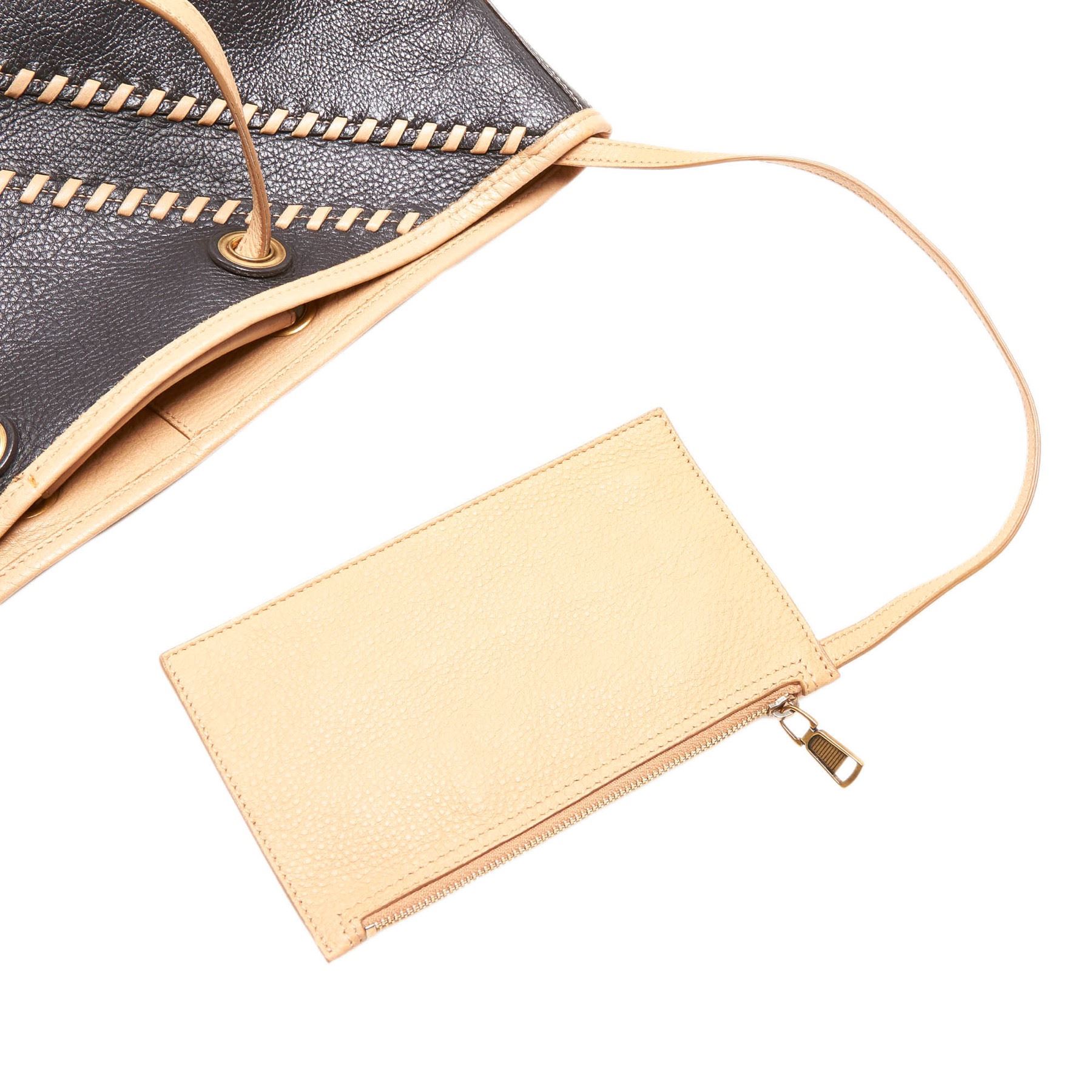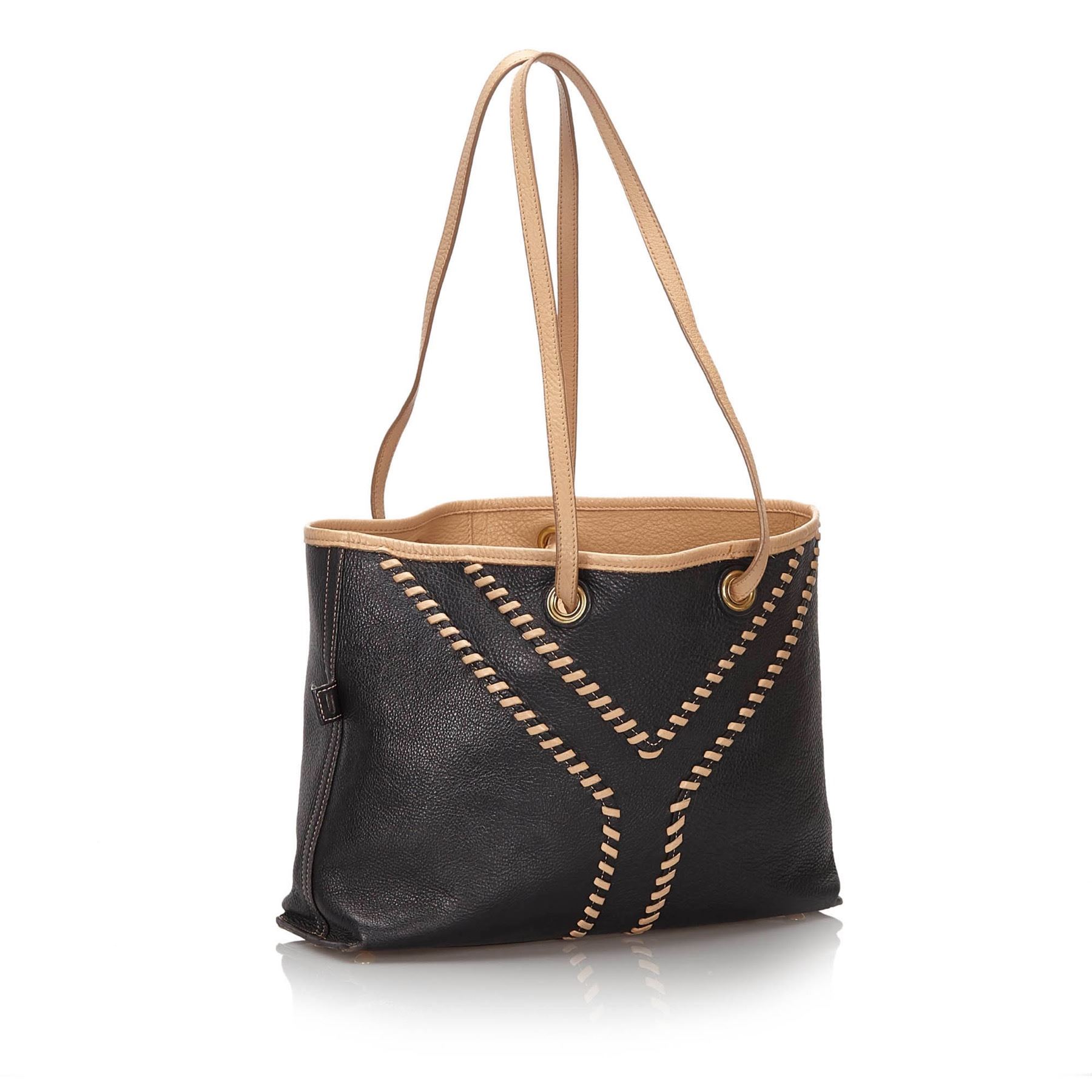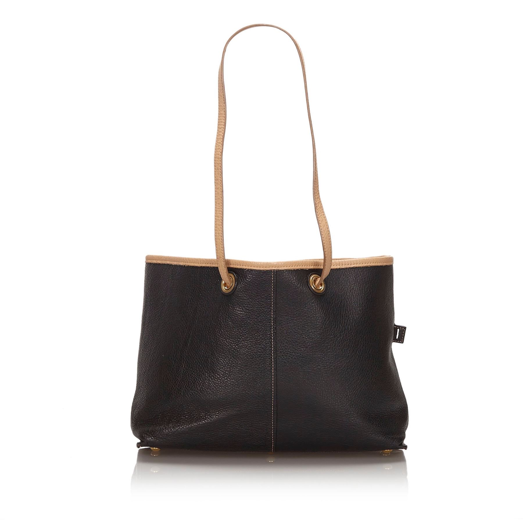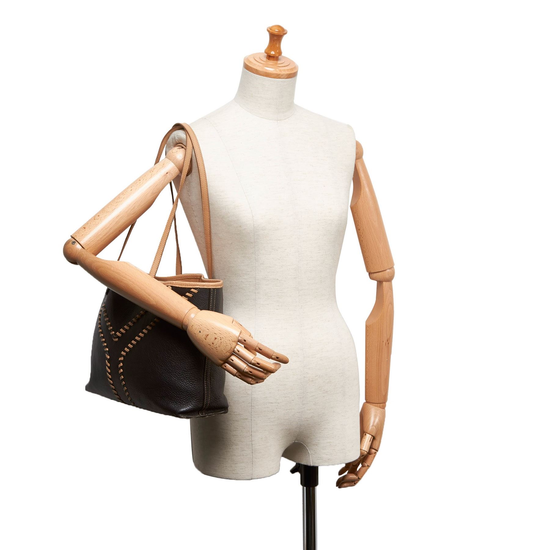 The Reversible Neo Double Tote features a reversible leather body, flat leather straps, an open top, and an interior zip pouch. Leather x Others Black x Brown x Beige Exterior corners is scratched. Size: 22 x 30 x 8 Card: NO Made in: Italy
