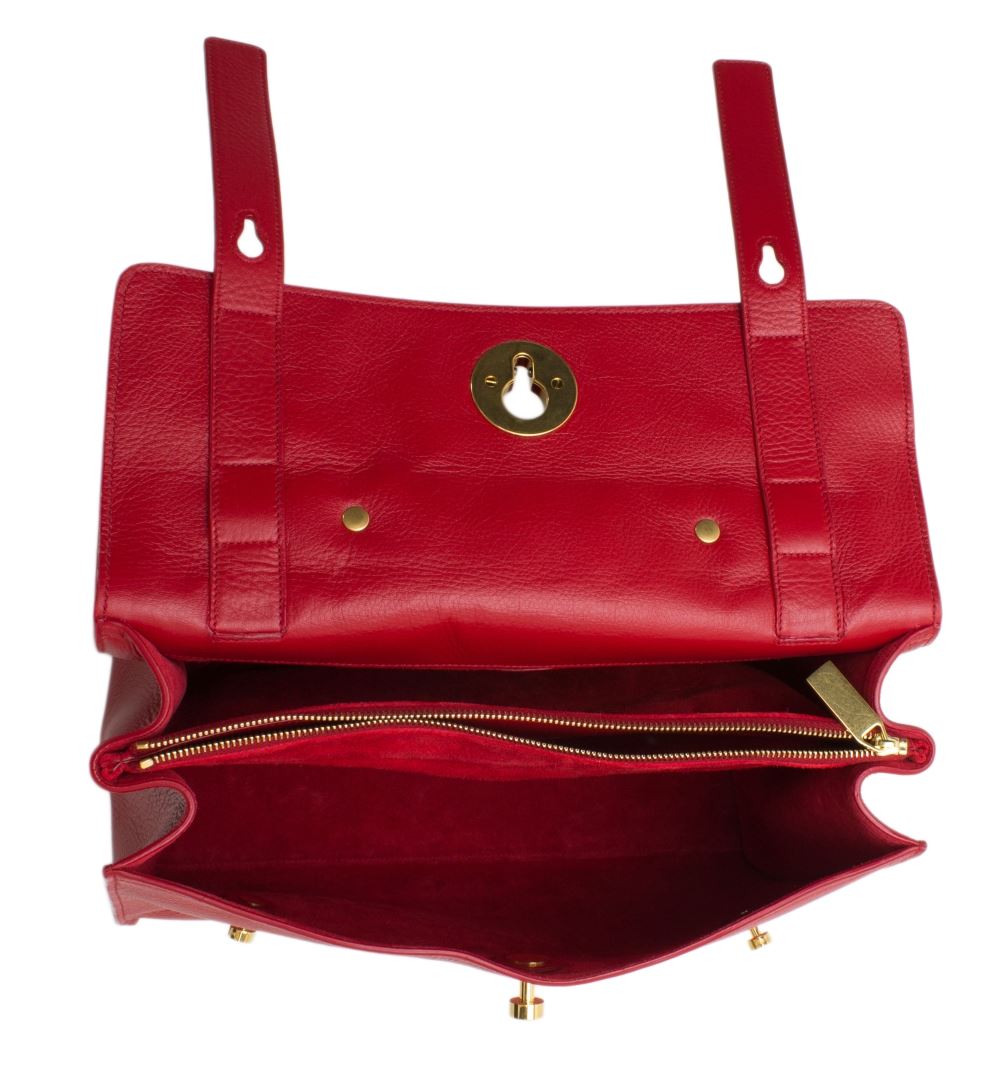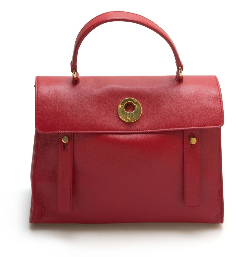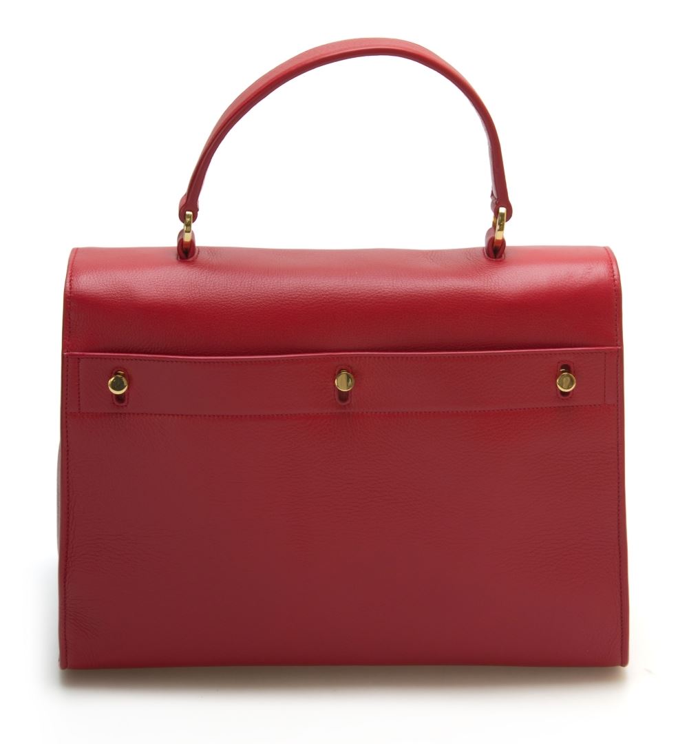 Saint Laurent YSL Muse 2 red leather bag - all leather including sides Single top handle with 4.5" drop 3 Studs closures / push studs to expand sides 2 compartment and interior zip pocket, exterior flap pocket Bottom metal studs for protection Gold tone hardware Fully lining in fine red suede Dimension: size Medium / approx. 19.5"H X 2.5" L X 6"D It comes with detachable strap with drop 21.5", This is a brand new bag.