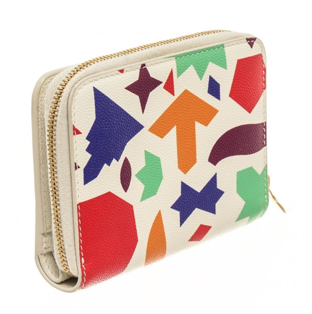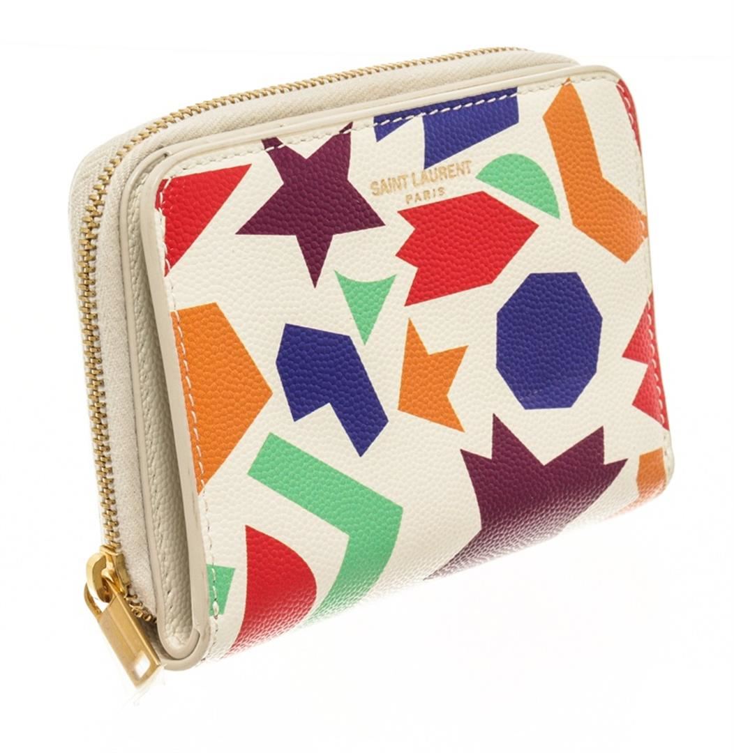 YSL Saint Laurent White Multicolor Pebbled Leather Compact Zippy Wallet