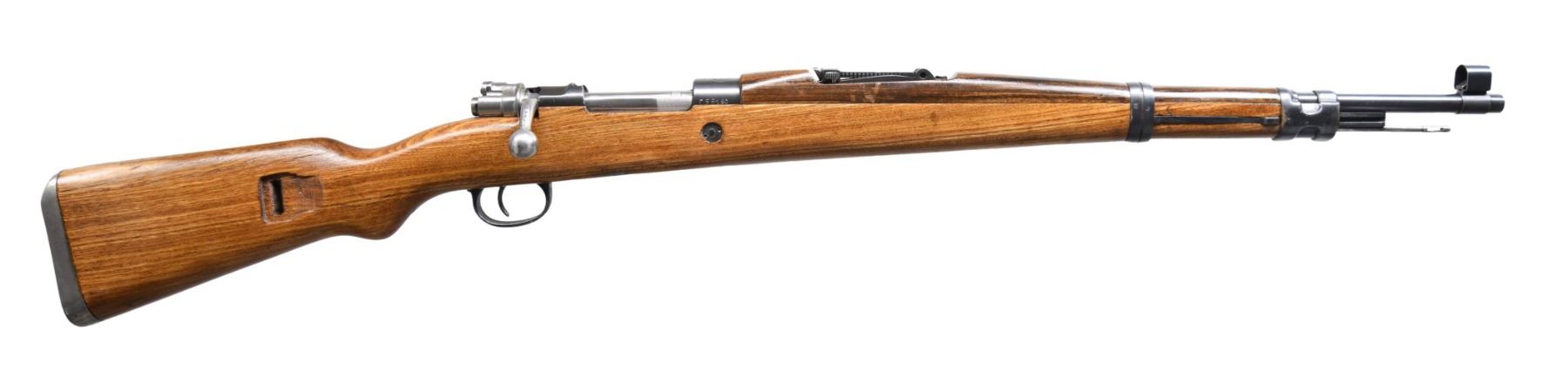 Cal. 8mm Mauser. S# G55190. Bbl. 23 1/2" with Cherry's import marking. Blade front sight with hood. Tangent rear sight graduated to 2000m. All visible matching numbers. Receiver top has post-war Yugo crest and "M48A" marking. Blue finish. European elm stock set with left side sling provisions. Cleaning rod present. CONDITION: refinished stock has an added varnish with some dings and scattered handling marks. Metal retains 95% reblue, with some dings on rear band, scattered edge wear, and some light fading. Action functions properly when hand-cycled. Bright very good bore, with some light frosting. (24-5734/MJC). CURIO. $400-600.