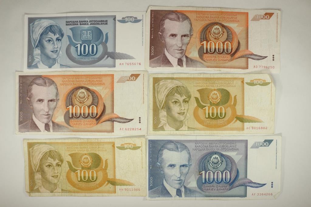 2-1990-1000 DINARA AND 1991-1000 DINARA. THE 1000 DINARAS HAS NIKOLA TESLA ON THEM