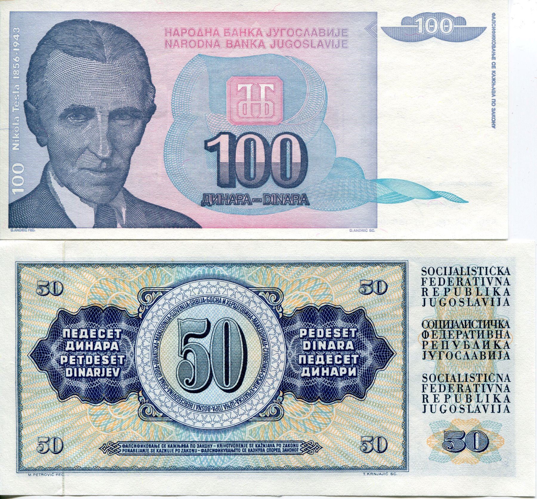 YUGOSLAVIA 3 BANK NOTES 20, 50 & 100 DINARA