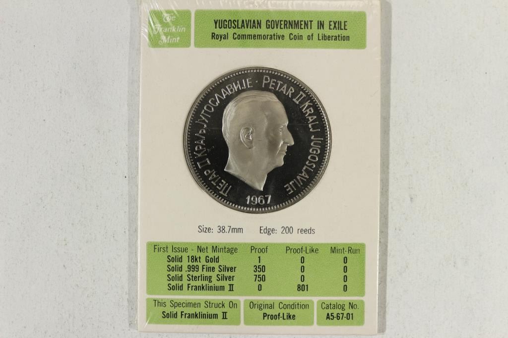 COIN OF LIBERATION, MINTED IN SOLID FRANKLINIUM II (PF LIKE), ORIGINAL MINT PACKAGING BY THE FRANKLIN MINT