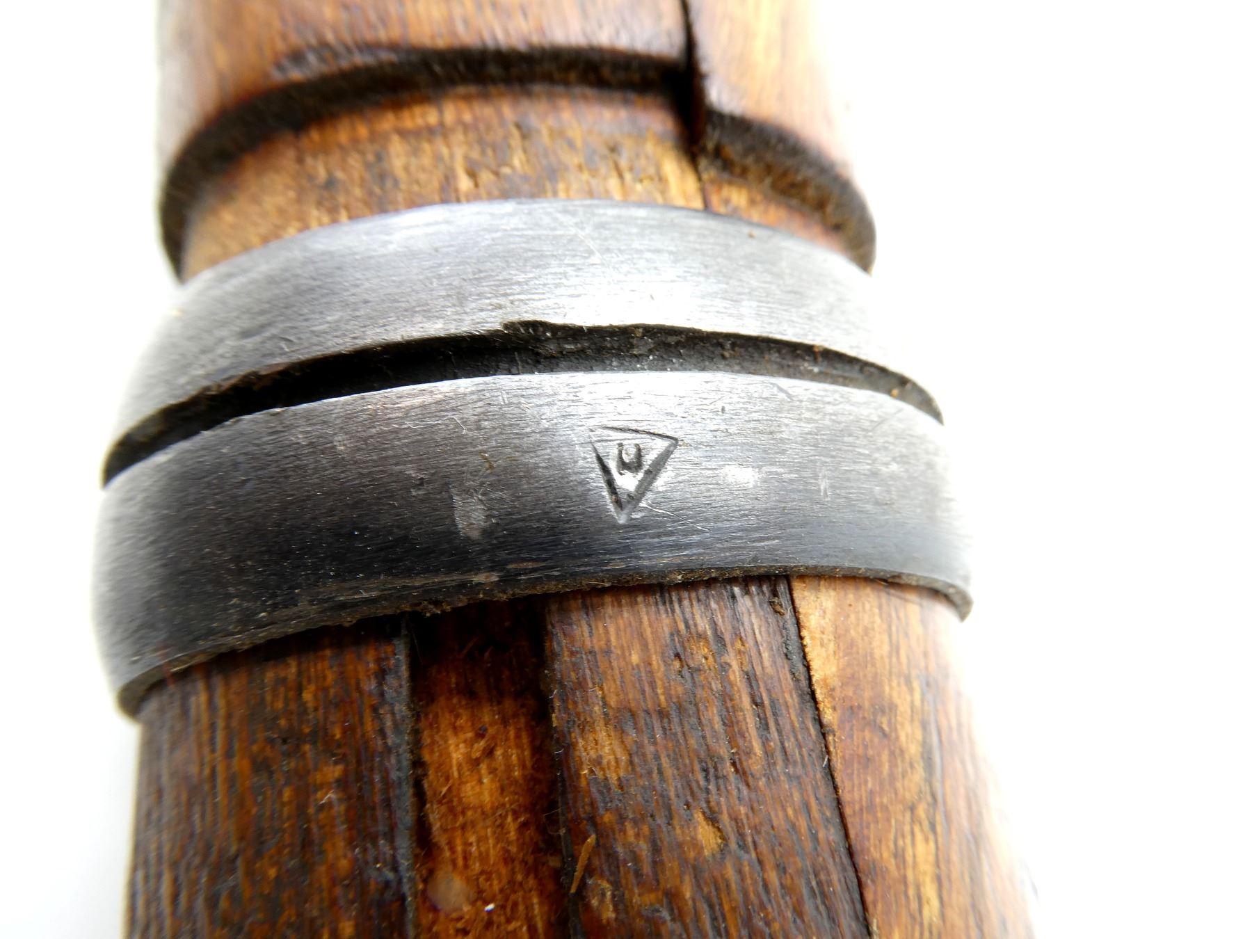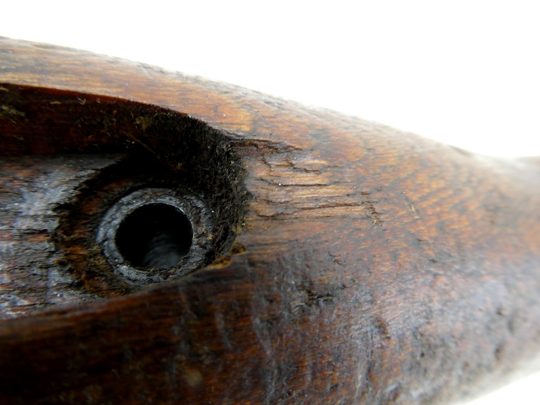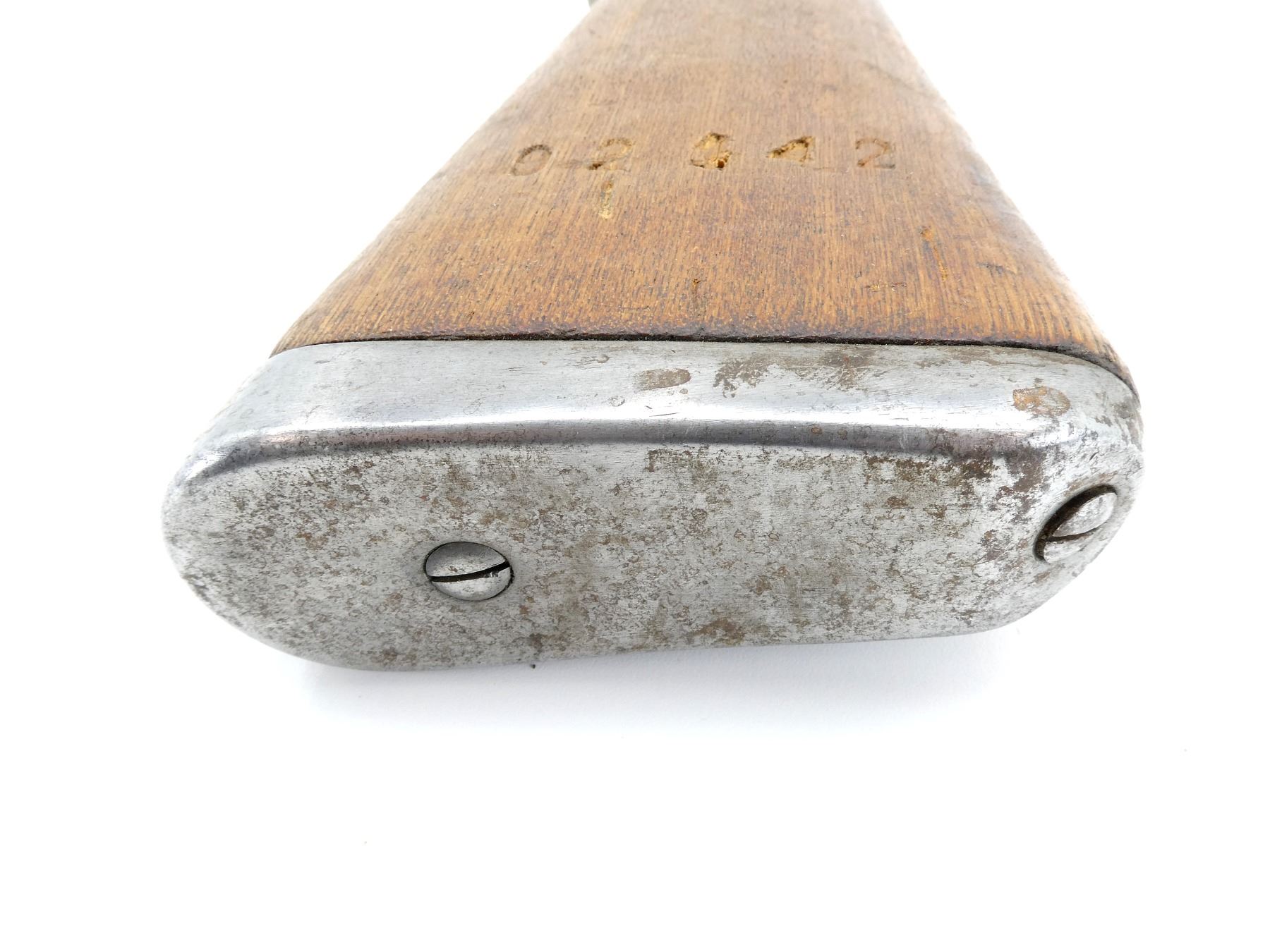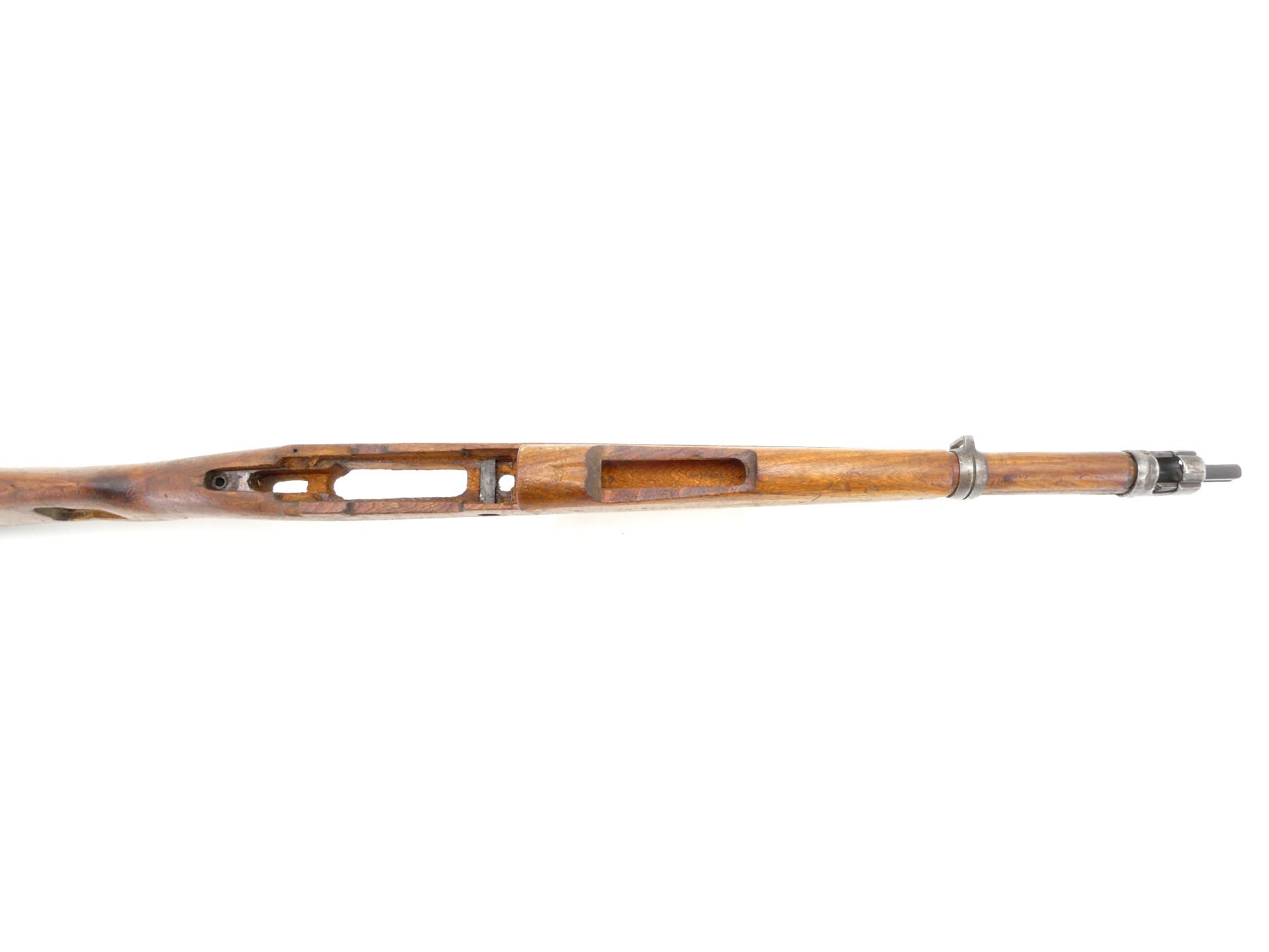 (1) FITS ASSORTED 8MM RIFLES, WOOD CONSTRUCTION WITH PISTOL GRIP, STEEL BUTT PLATE, BARREL BANDS, BAYONET LUG & HAND GUARD, VARIOUS PROOF MARKS, SMALL CRACKS & CHIPS, OAL APPROX. 39.25". MAY REQUIRE FITTING. SEE PHOTOS.