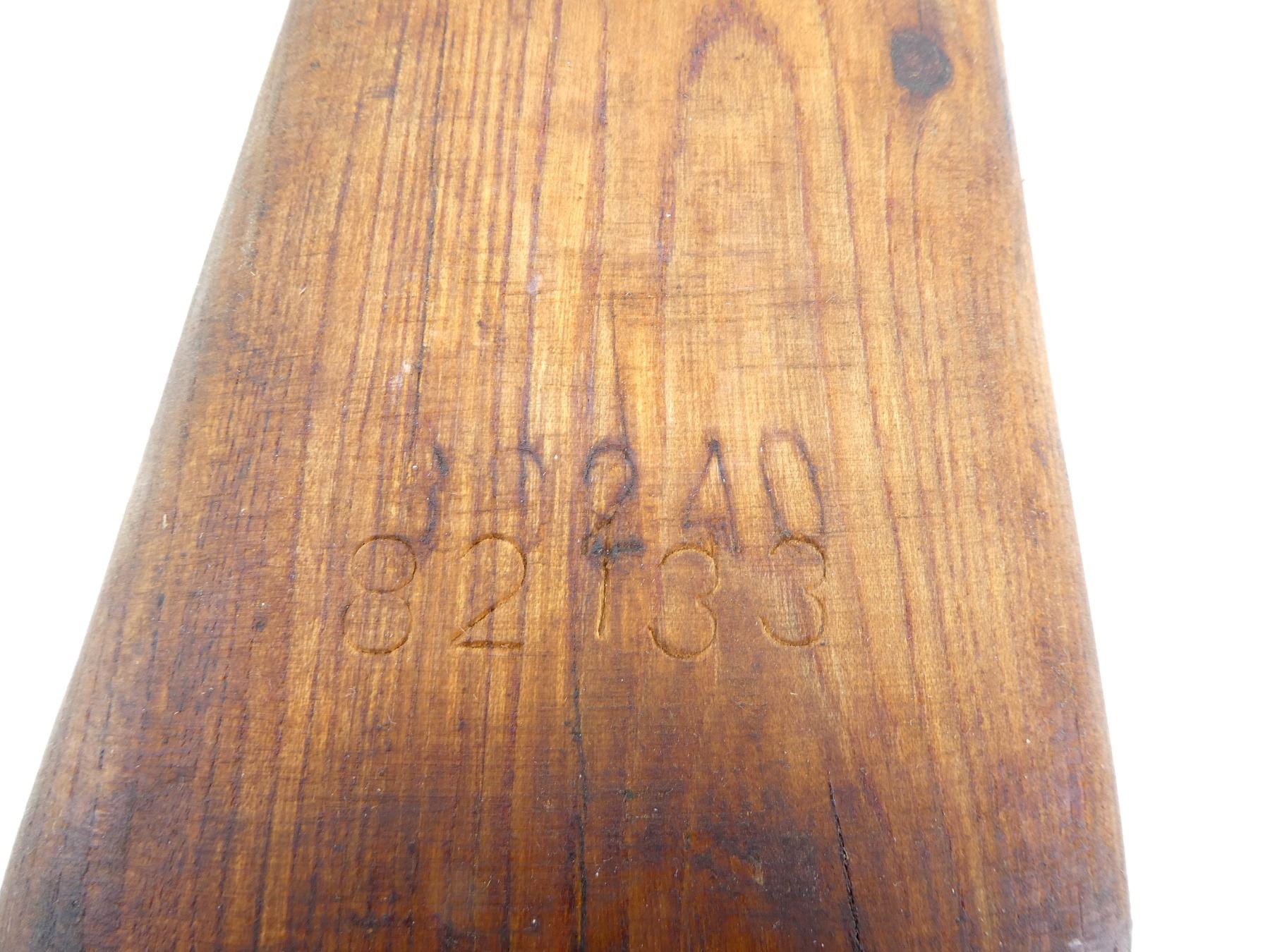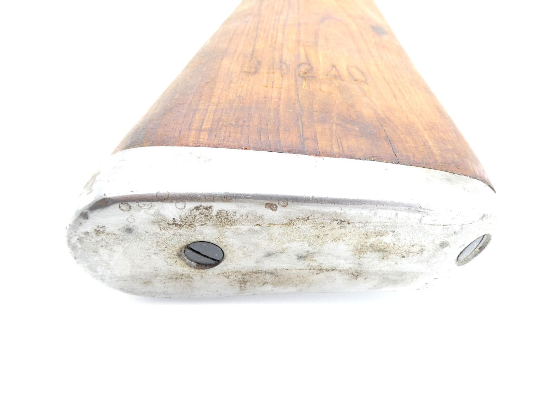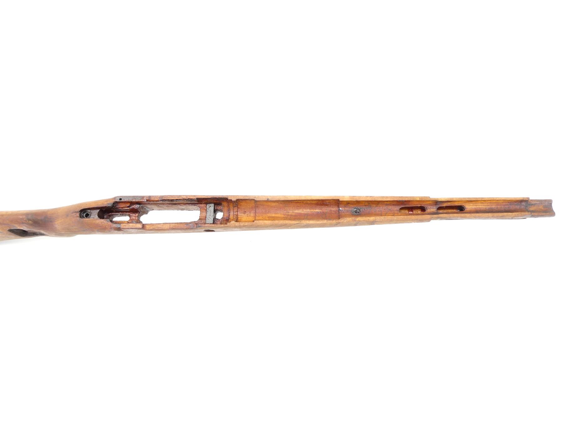 (1) FITS ASSORTED 8MM RIFLES, WOOD CONSTRUCTION WITH PISTOL GRIP & STEEL BUTT PLATE, VARIOUS PROOF MARKS, SMALL CRACKS & CHIPS, OAL APPROX. 37.25". MAY REQUIRE FITTING. SEE PHOTOS.