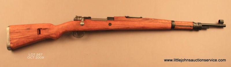 YUGOSLOVIAN M-48 Mauser, #K6216, 8mm., blued finish with hardwood stock numbered to the gun. Rifle remains in excellent, unissued condition with all visible serial numbers matching and a thin coat of cosmoline remaining on the bolt.Also included are all accessories for the gun including a bayonet, leather sling, cleaning kit, and ammo pouches. Est. $125-$250.