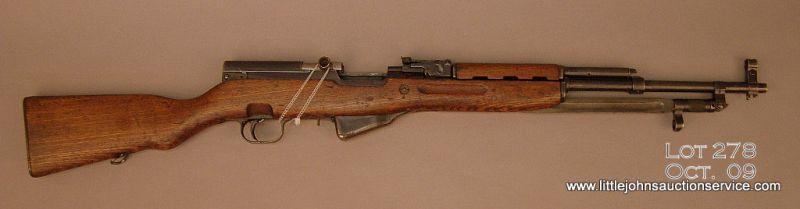 YUGOSLOVIAN Model 59 SKS, # C-46502, 7.62x39 cal., blued finish with hardwood stock. Rifle is in fair to good condition, with thinning blued finish, stock numbered to the gun and worn. Est. $125-$250.