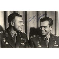 <b>273. YURI GAGARIN AND VLADIMIR TITOV </b>Excellent S.P. 6" x 4" b/w, a fine chest, up photo of the first two men in space, both in full uniform, boldly signed by each beside their respective image. A fine combination of names, fine condition.<b>$300-500</b>