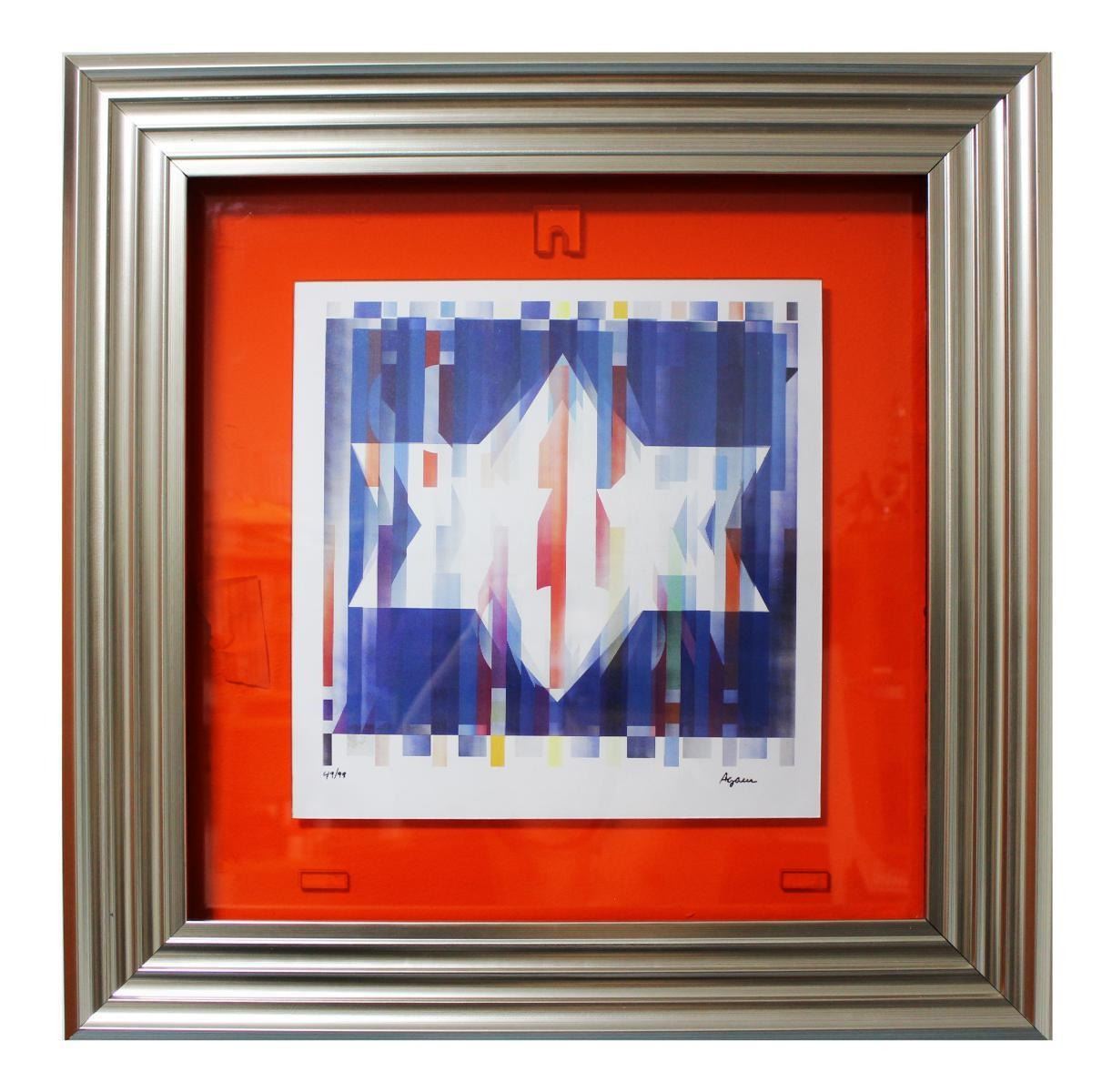 Artist: Yaacov Agam. Medium: Agamograph. Title: Star of Hope. Size (Unframed): 20" x 20". Size (Framed): 26" x 26". Limited Edition: Very rare edition of 99.. Certificate of Authenticity: is included. Additional: Custom framed and Ready to Hang. Hand signed and numbered by the artist.. Reference# 10373.
