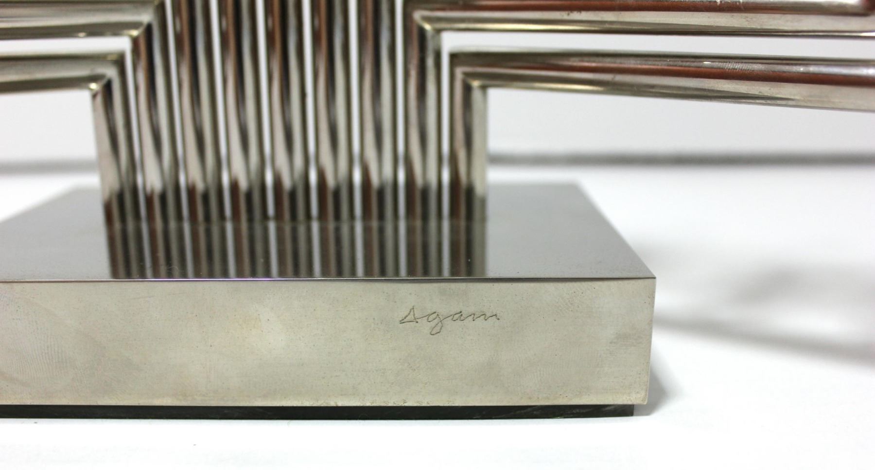 Artist: Yaacov Agam. Medium: Brass Sculpture. Title: Spinning Tops. Size (Unframed): 9.1" x 13.8". Certificate of Authenticity: Is included. Additional: Published 1979. Original signature on base. Limited edition numbered. Size: 23 x 35 x 10 cm / 9.1 x 13.8 x 3.9". Reference# 13428.