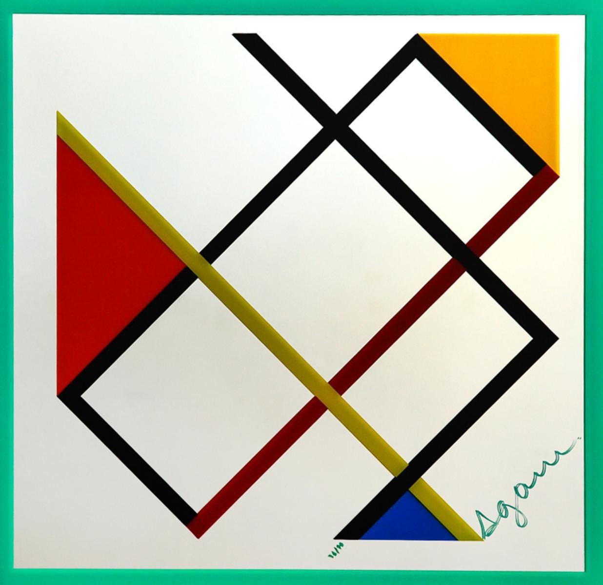 Artist: Yaacov Agam. Medium: Color Serigraph with Pigments on Glass Mirror. Title: Homage to Mondrian. Size (Unframed): 28" x 28". Measures approx. (Framed): 34" x 34". Certificate of Authenticity: Is included. Additional: Custom framed. Reference# 18918.