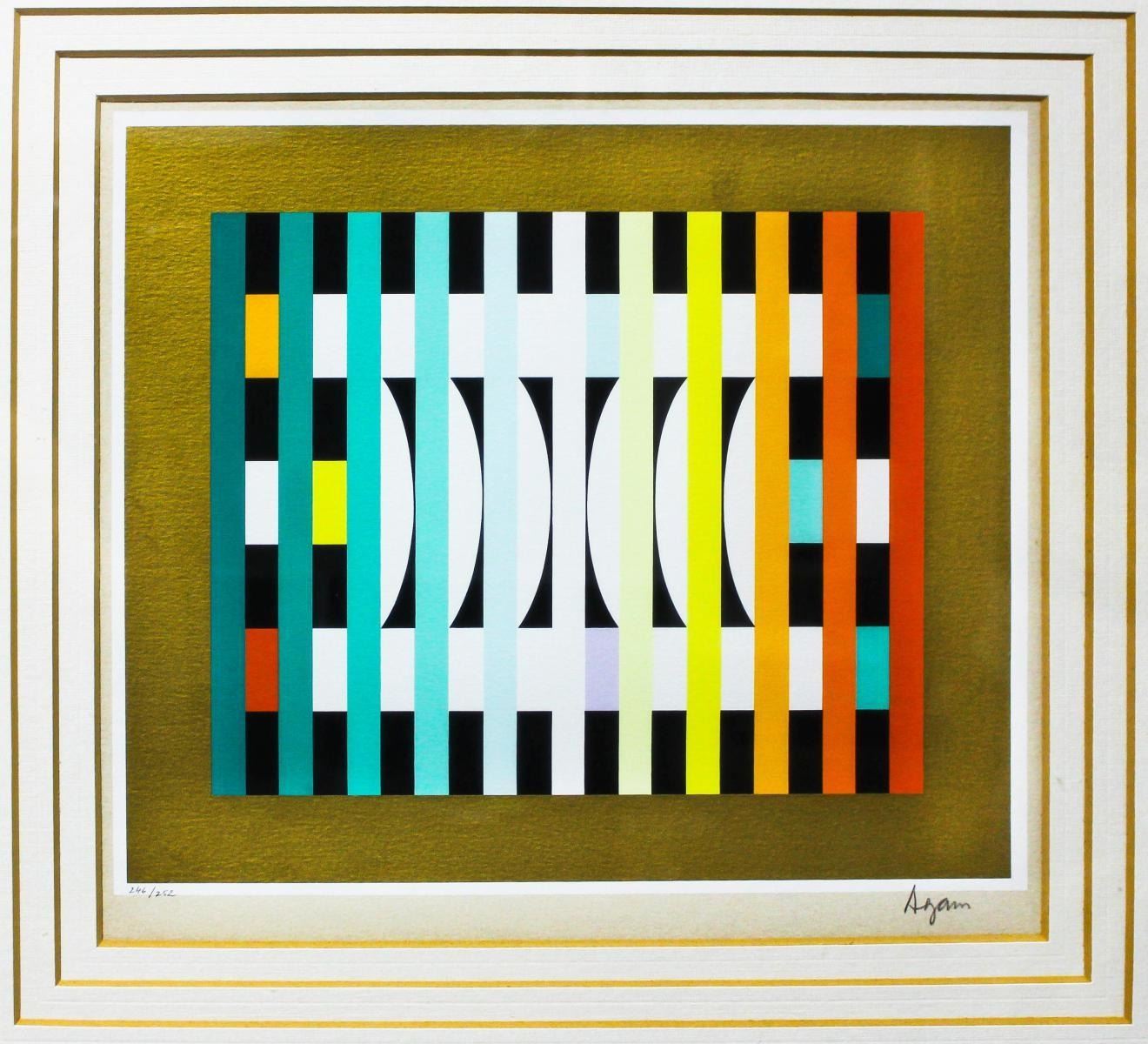 Artist: Yaacov Agam. Medium: Original Lithograph. Title: Moon halves. Size (Unframed): 10" x 12". Size (Framed): 19" x 20.5". Limited Edition: Edition of 252. Certificate of Authenticity: Is included. Additional: Custom Framed. Reference# 13357.