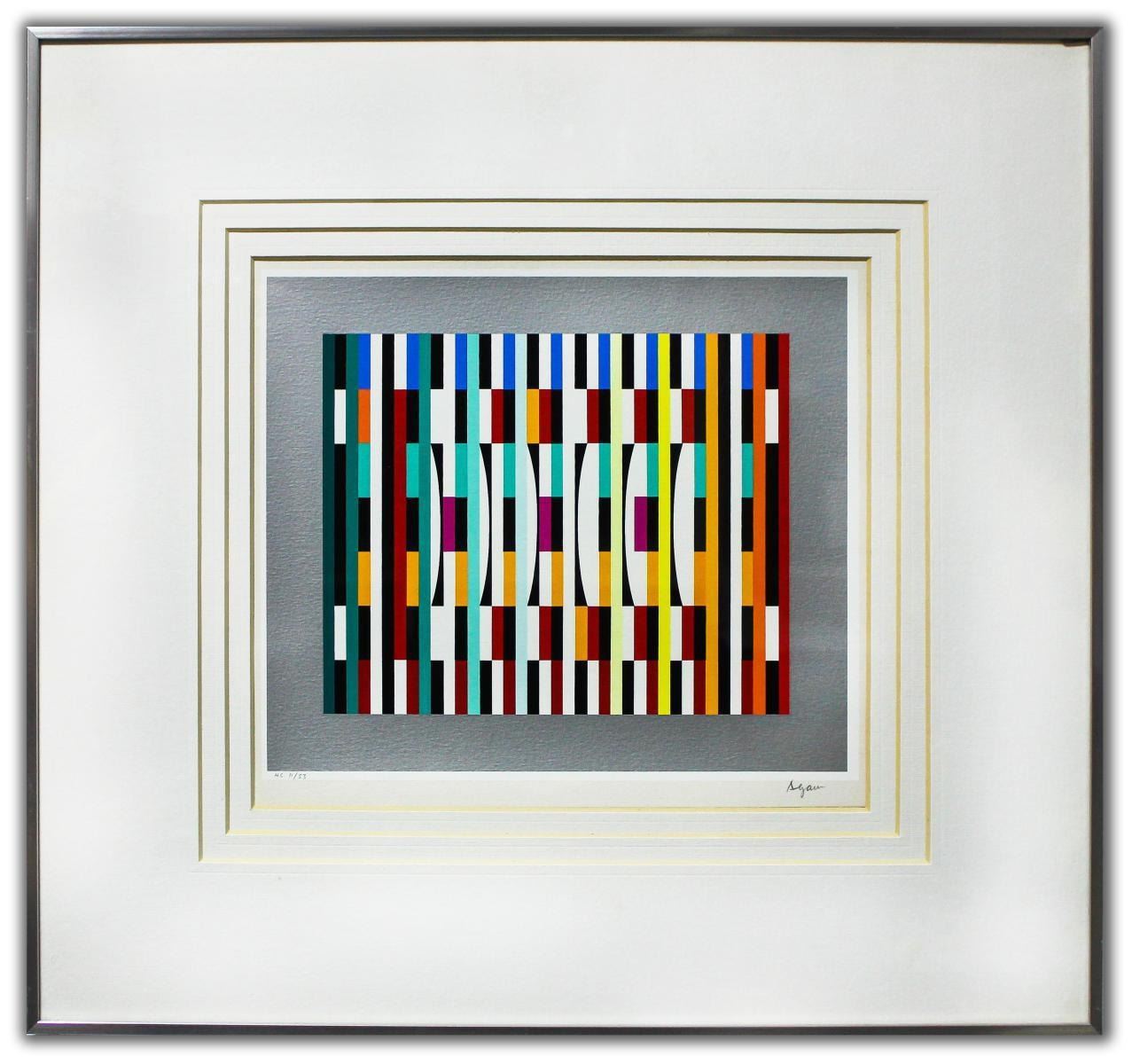 Artist: Yaacov Agam. Medium: Original Lithograph. Title: Untitled. Size (Unframed): 10" x 12". Size (Framed): 19" x 20.5". Limited Edition: Edition of 53. Certificate of Authenticity: Is included. Additional: Custom Framed. Reference# 13362.
