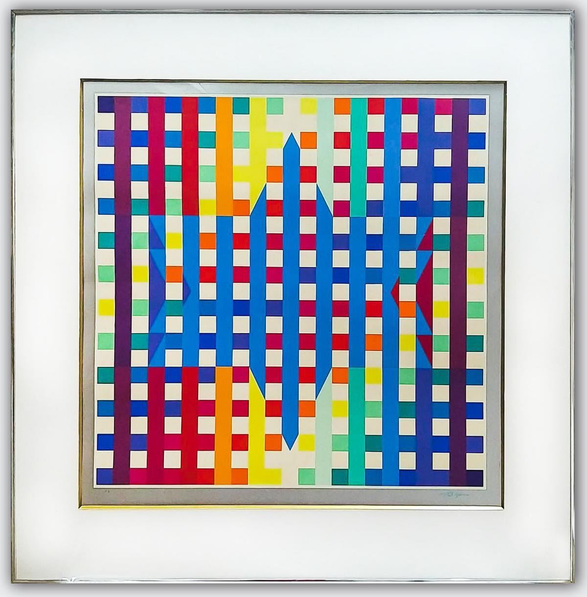 Artist: Yaacov Agam. Medium: Original Lithograph. Title: Untitled. Size (Unframed): 25.5" x 25.5". Size (Framed): 33" x 33". Certificate of Authenticity: Is included. Additional: Custom framed. Reference# 16242.