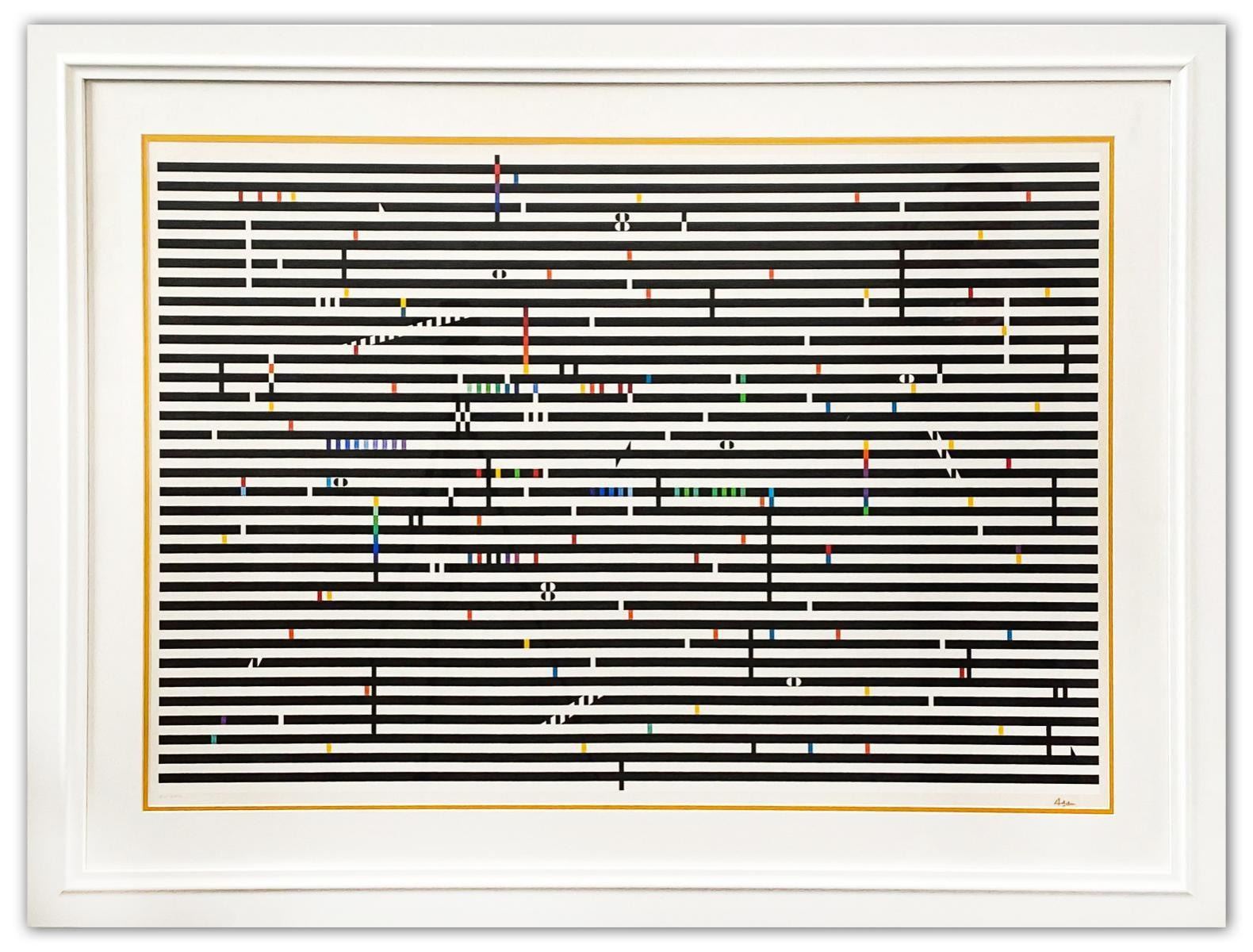 Artist: Yaacov Agam. Medium: Original Screenprint in colors on Arches paper. Title: Double Metamorphosis IV. Size (Unframed): 30" x 43". Size (Framed): 40" x 54". Limited Edition: Hand signed in Pencil and Numbered. Certificate of Authenticity: Is included. Additional: Custom Framed. Reference# 13875.