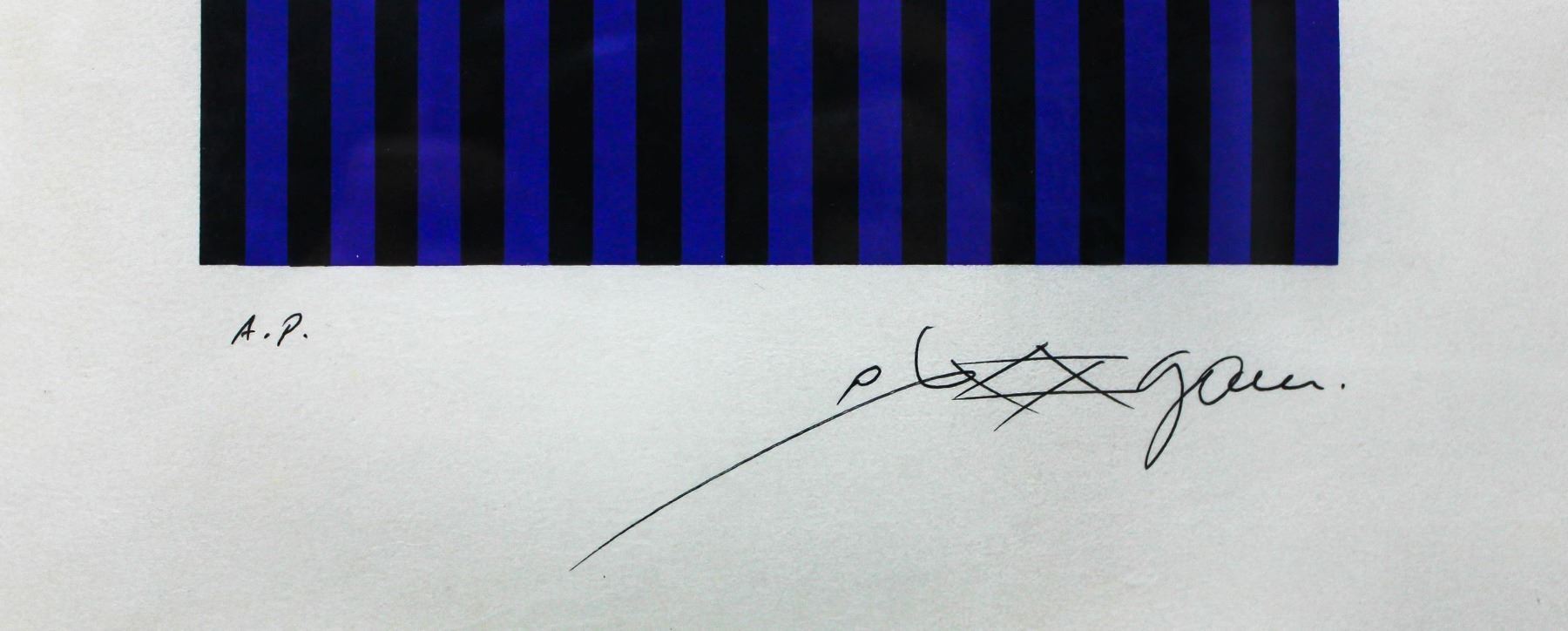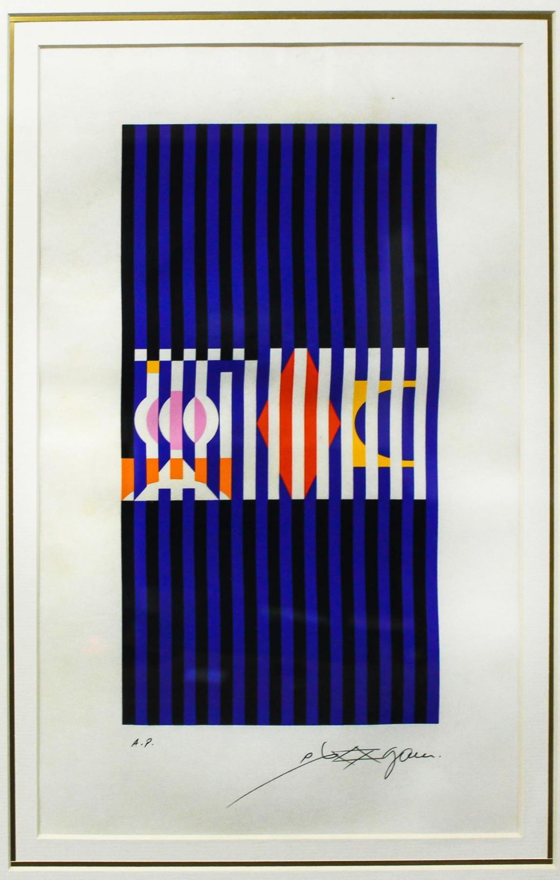 Artist: Yaacov Agam. Medium: Original Silkscreen on parchment Paper. Title: Untitled. Size (Unframed): 16" x 10". Size (Framed): 24" x 18". Certificate of Authenticity: Is included. Additional: Custom Framed. Reference# 13868.
