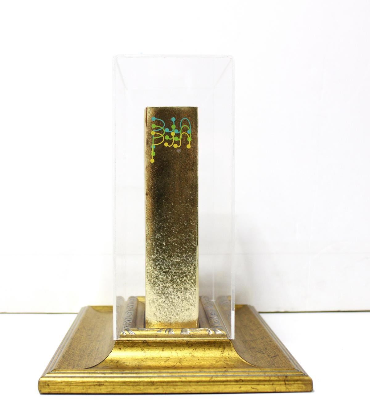 Artist: Yaacov Agam. Medium: Serigraph on Bible. Title: Golden Bible. Size (Unframed): 6.5" x 4.5". Certificate of Authenticity: From Gol Art Gallery and Publishing. Additional: The golden bible, original serigraph, with an artistic cover by artist Yaacov Agam (Israeli, b. 1928). Hand signed and numbered. Israel, 1987. With a fine wooden stand and a Perspex case. Very rare and limited edition. Bible dimensions: 17X11 cm. Edition of 2000. Reference# 10331.