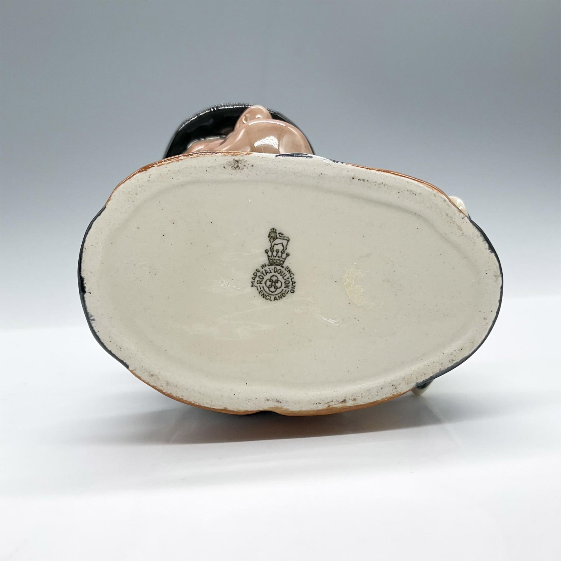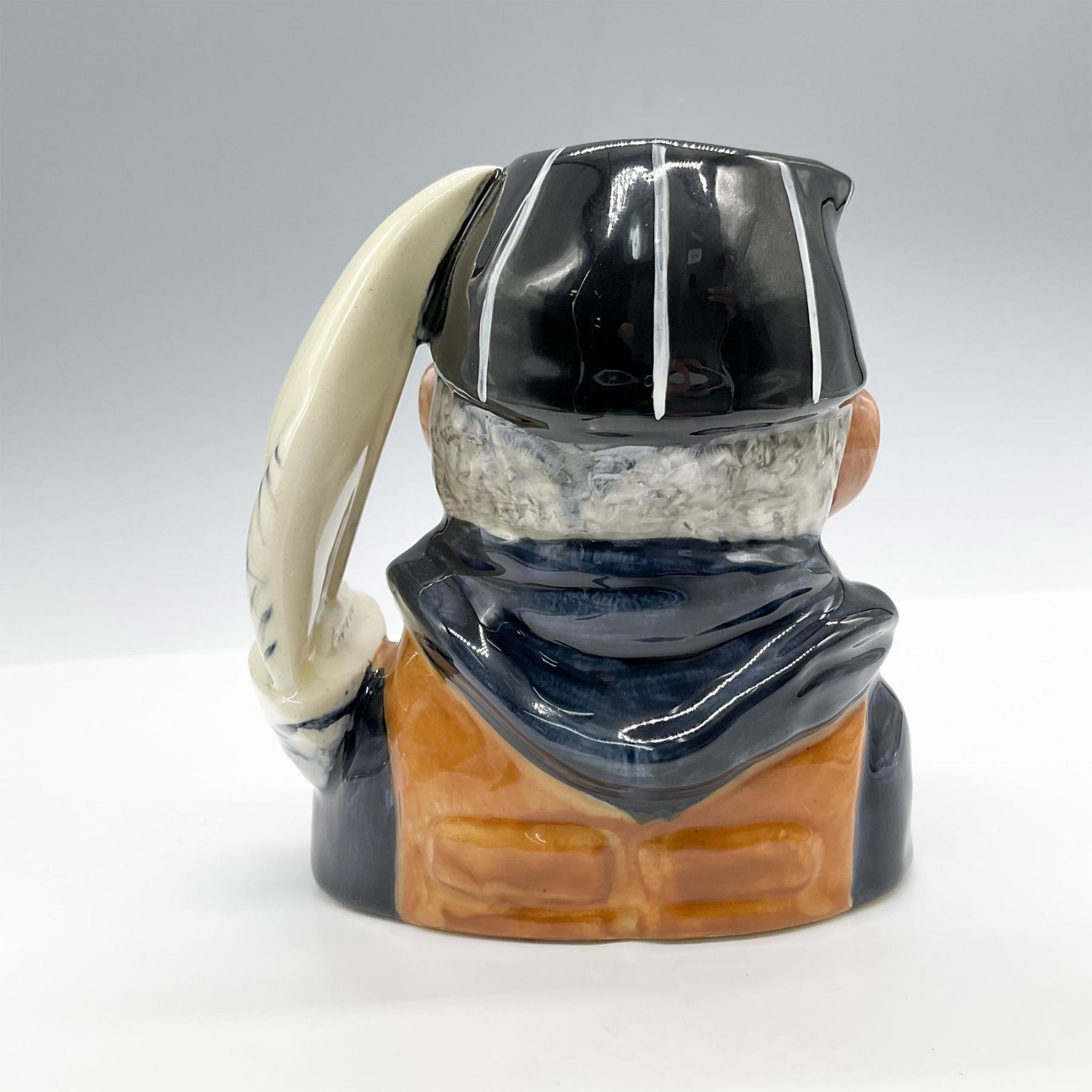 Only small character jug for the Yachtsman were prototyped, never made to production. Black cap, blue jersey with orange-yellow life jacket. A yacht with blue accents formed the handle. Royal Doulton backstamp.