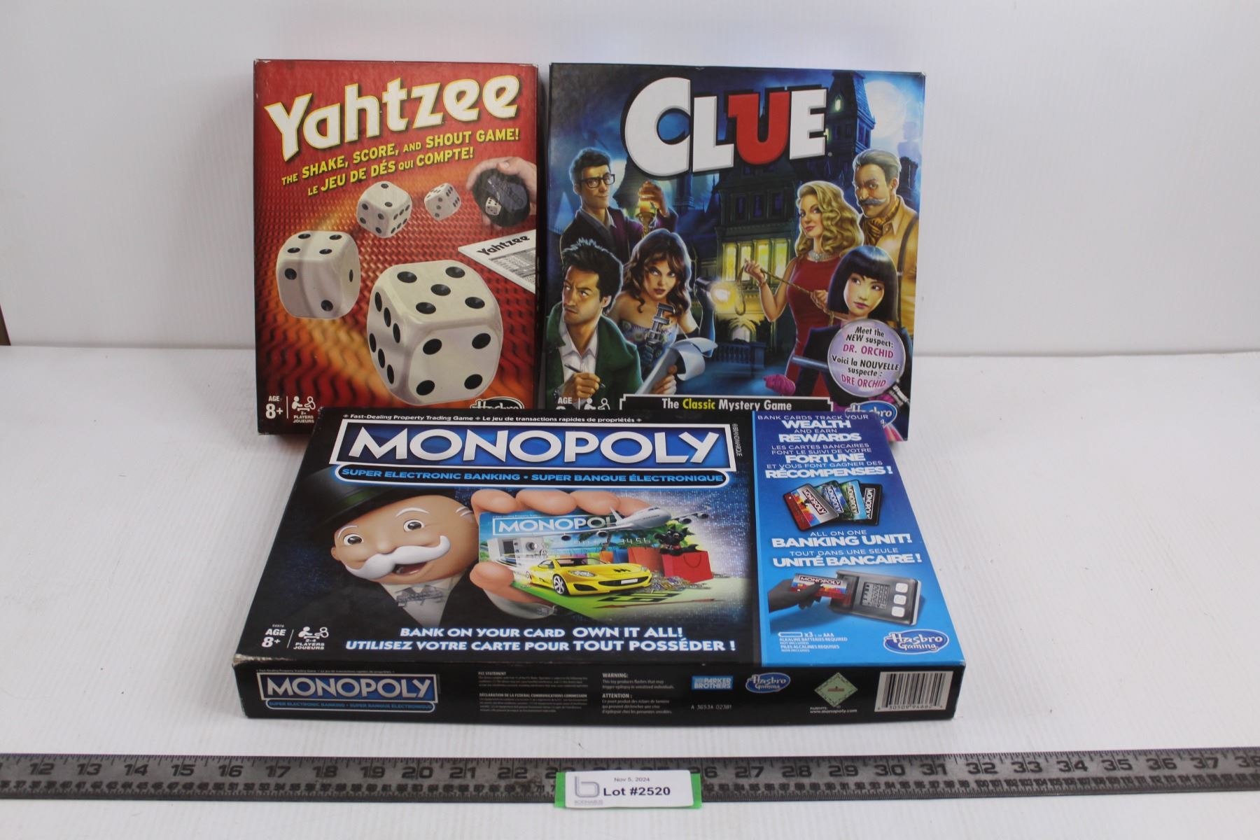 Yahtzee - As Is, Clue - As Is, Monopoly Super Electronic Banking - As Is
