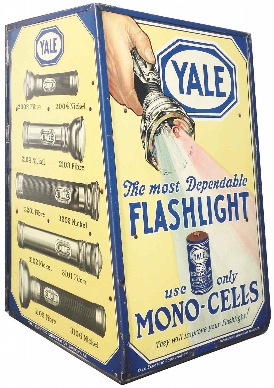 Yale Flashlight Tin Store Display Cabinet. Beautiful tin litho sides, near mint condition. 12 X 19 X 12 inches.