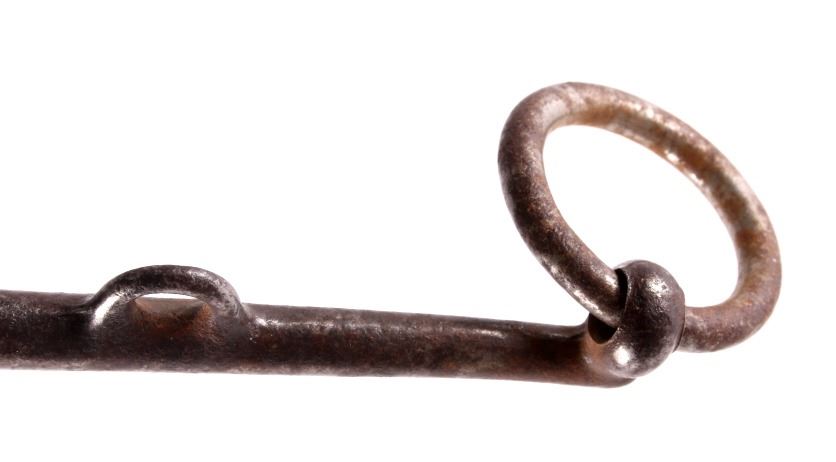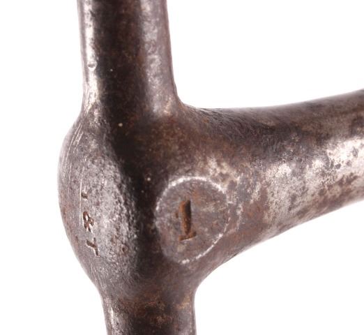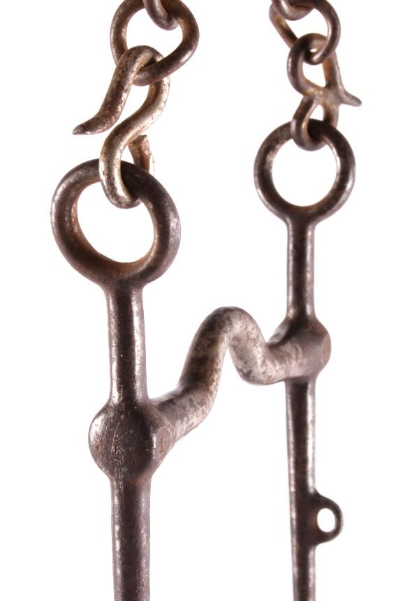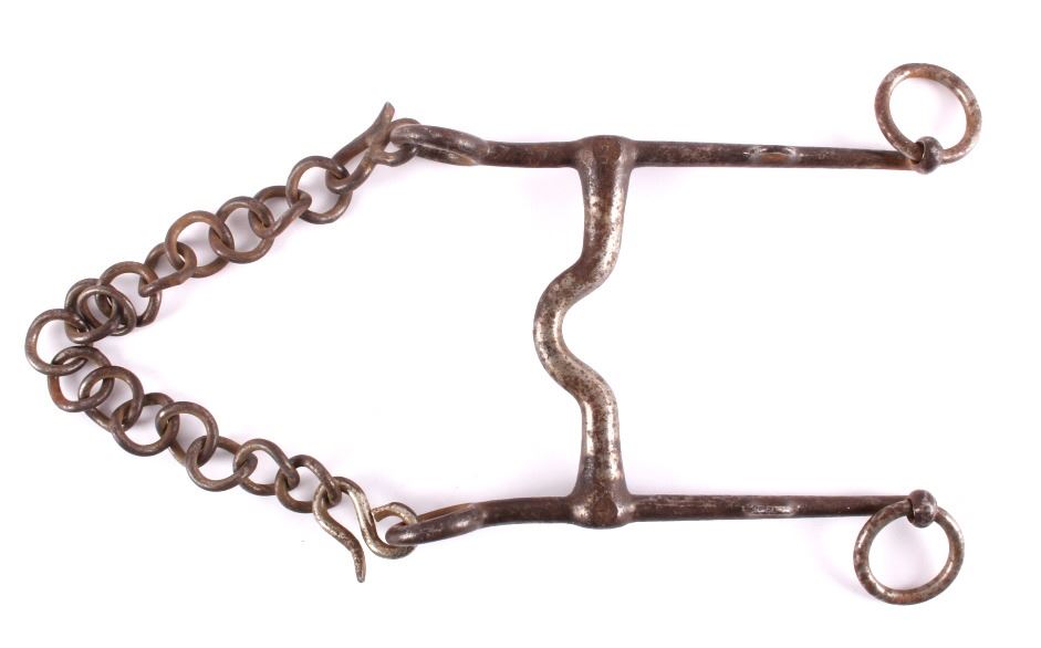 This is a Yale & Towne U.S. Cavalry horse bit from the Indian Wars era. The bit is marked "Y&T" and "US 1". The U.S. Cavalry horse bit is in good overall condition. It does show wear and use consistent with its age. The bit measures 5.25" x 7".
