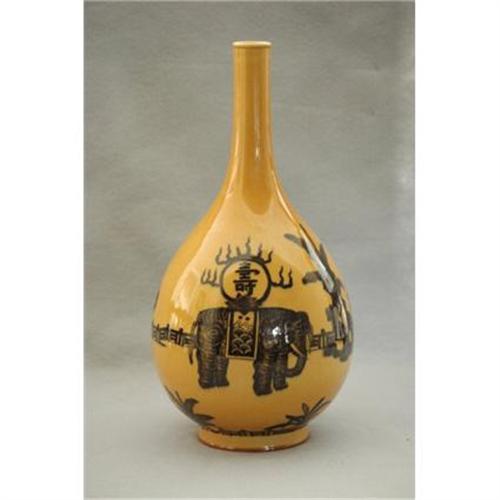 <tr><td>Title:Yallow and black glazed porcelain vase</td></tr>