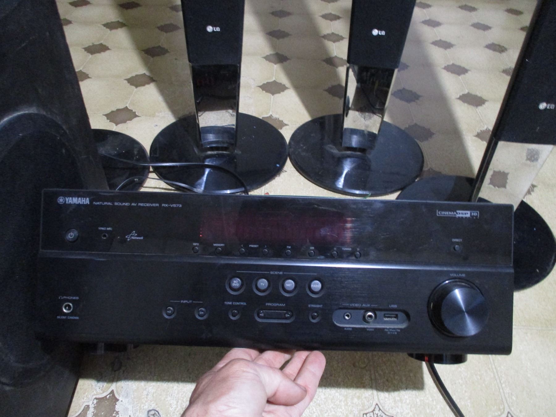 Yamaha AV Receiver RX-v573 (Powers on) w/ LG 450Watt Sub and (4) LG 310 Watt Speakers (No Remote)