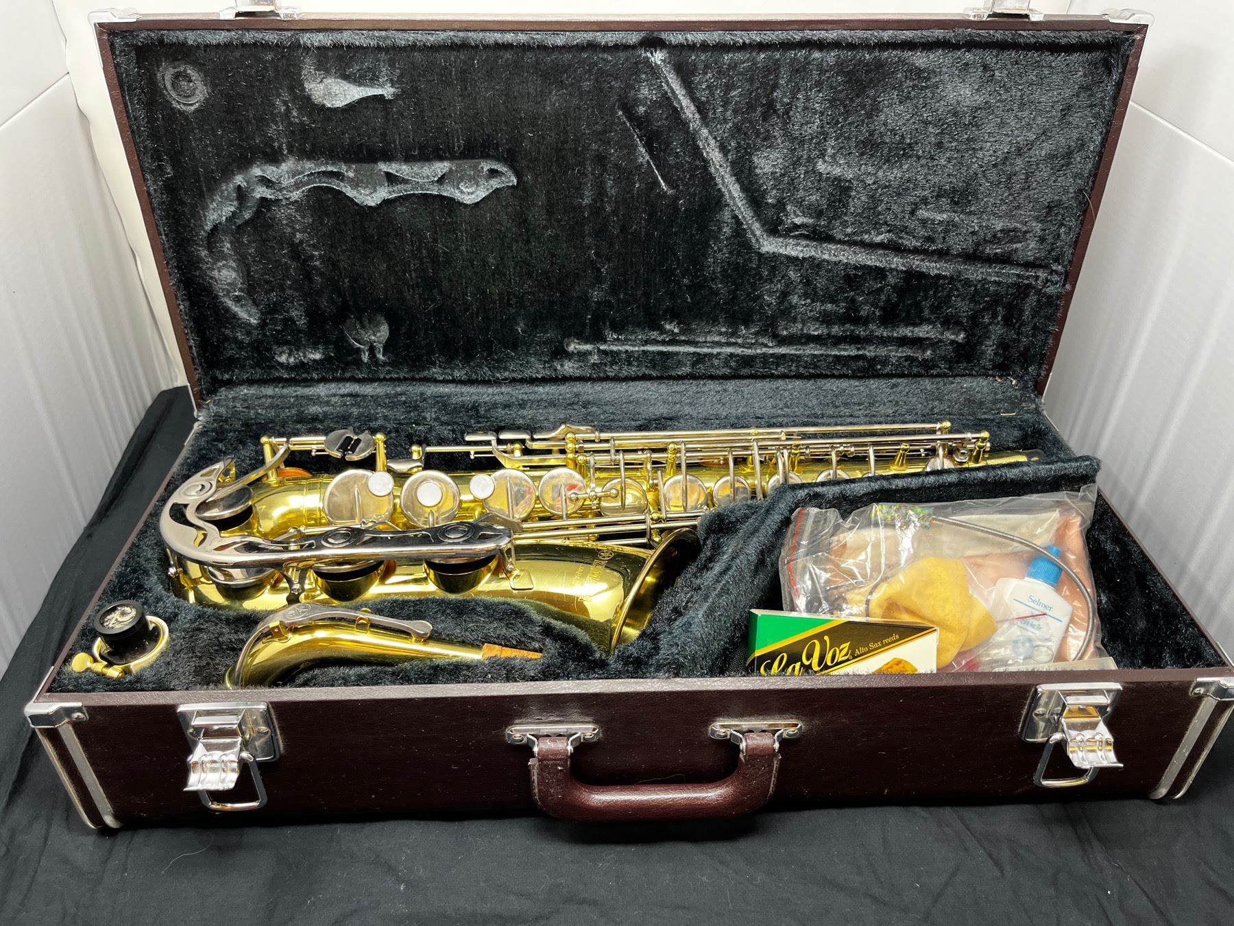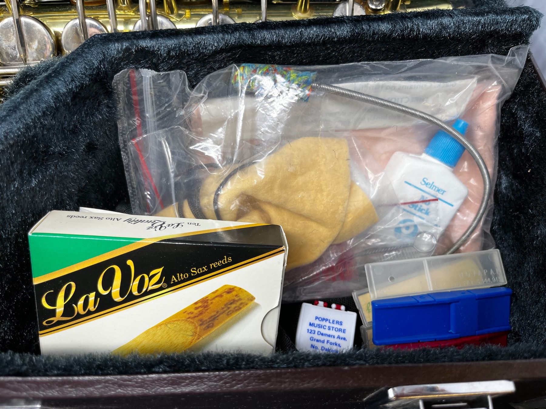 High end Yamaha YAS-23 saxaphone with case and some accessories.