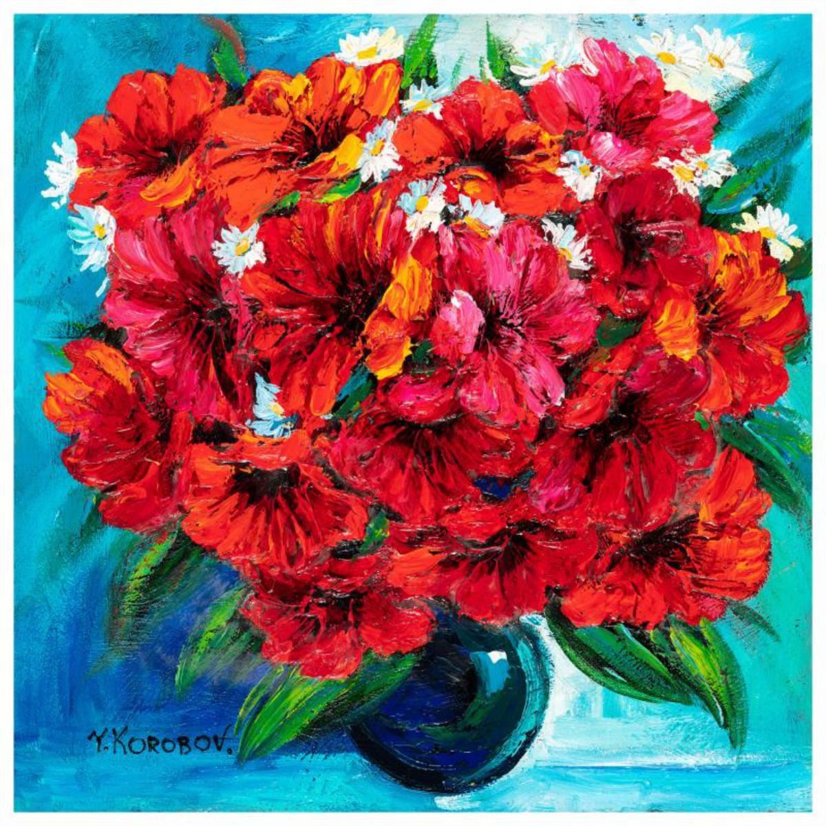 Yana Korobov, "Peacefulness" Original Acrylic Painting on Canvas, Hand Signed with Letter Authentici