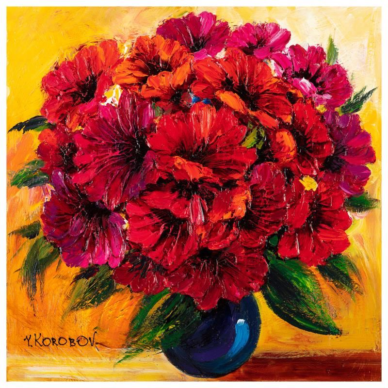 Pure Energy is an original acrylic painting on canvas by Yana Korobov, hand signed by the artist. Includes Letter of Authenticity. Measures approx. 24" x 24" (image).