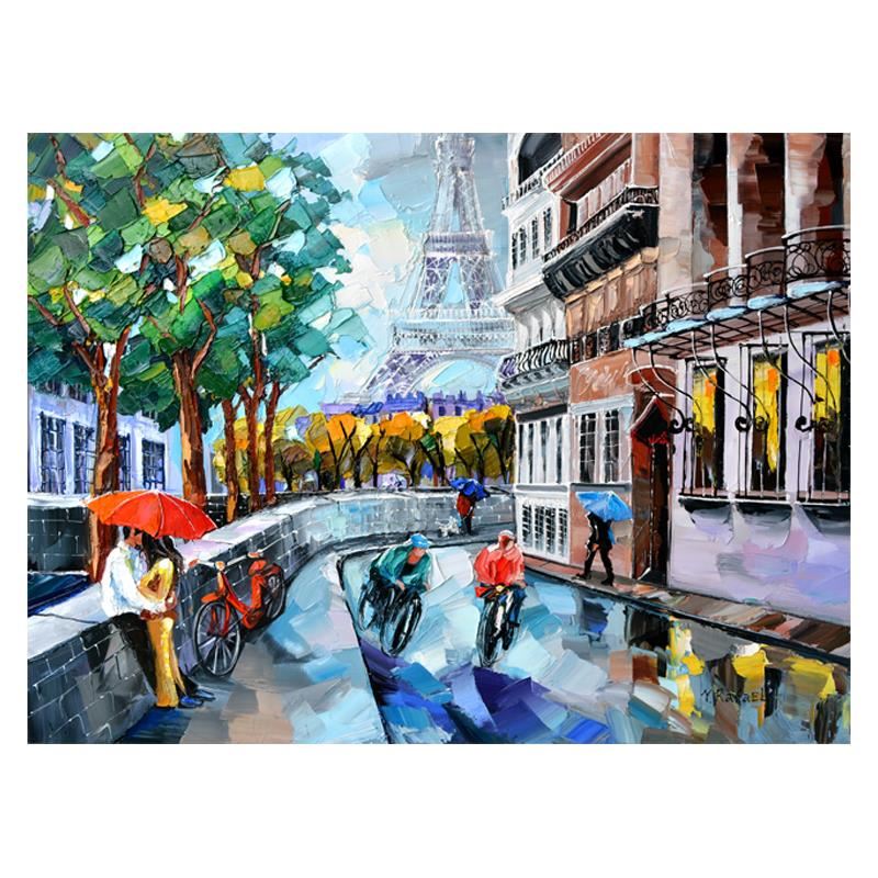 "Paris Bike Ride" is an original painting, acrylic on stretched canvas, by Yana Rafael. Hand signed by the artist, this piece is accompanied by certificate of authenticity and measures approximately 30" x 40".