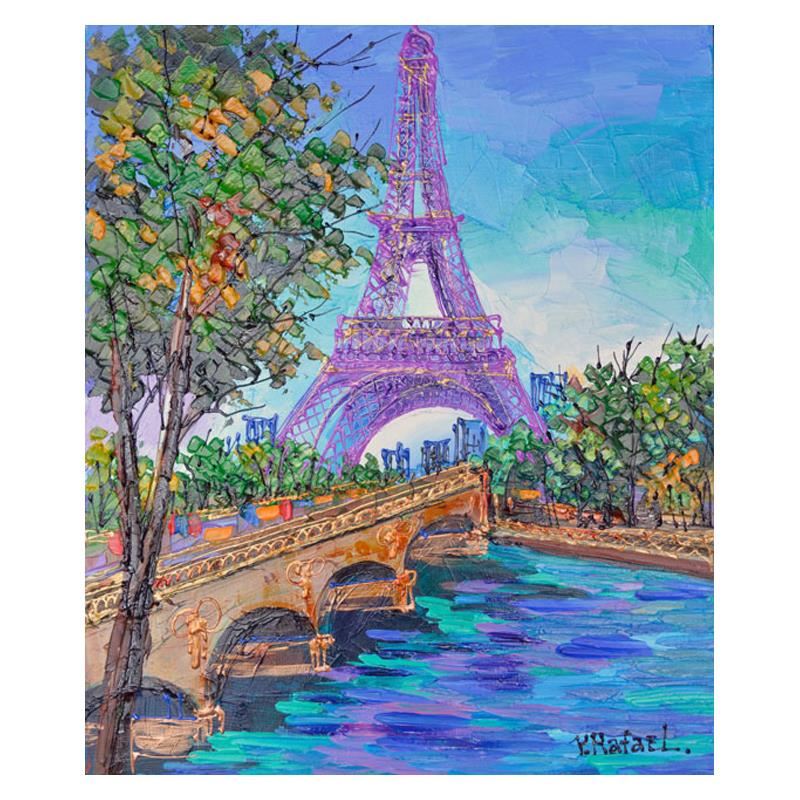 "River by the Eiffel" is an original painting, acrylic on stretched canvas, by Yana Rafael. Hand signed by the artist, this piece is accompanied by certificate of authenticity and measures approximately 24" x 20".