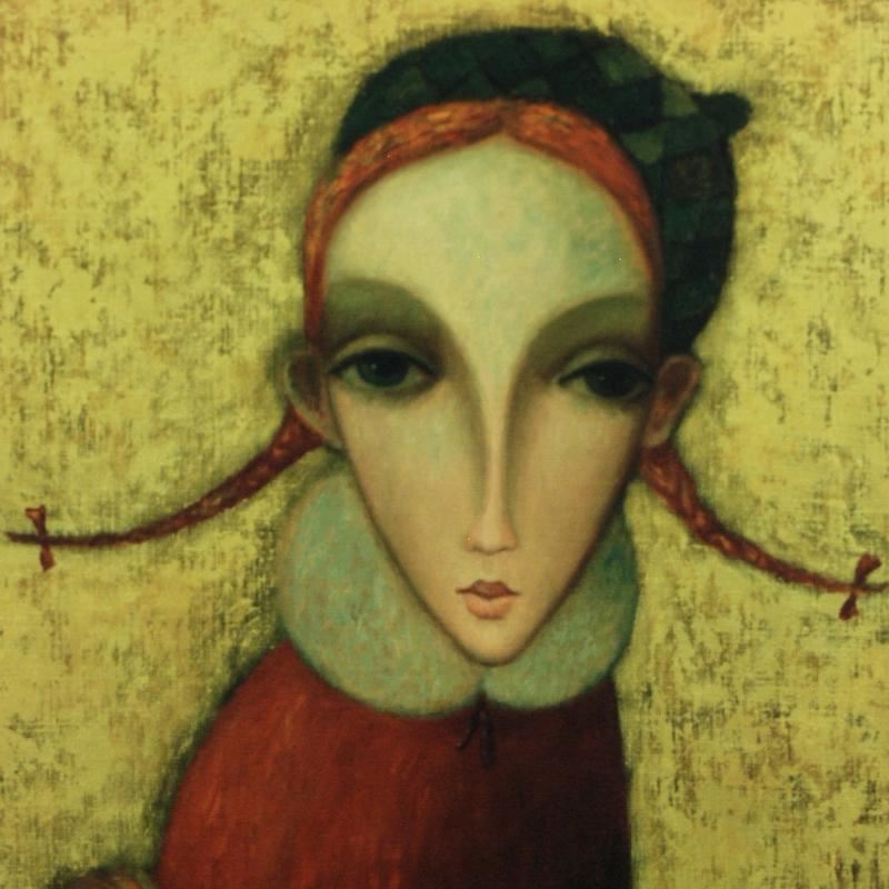 Combining time-honored religious icon painting with western style portraiture, the hauntingly beautiful art of Sergey Smirnov (1953-2006) is inspired by the 'Parsuna' art movement. "Yana" is a limited edition mixed media on canvas, printed in 2006, numbered in verso and hand signed by the artist. Includes Certificate of Authenticity! Measures approx. 13" x 17" (image).