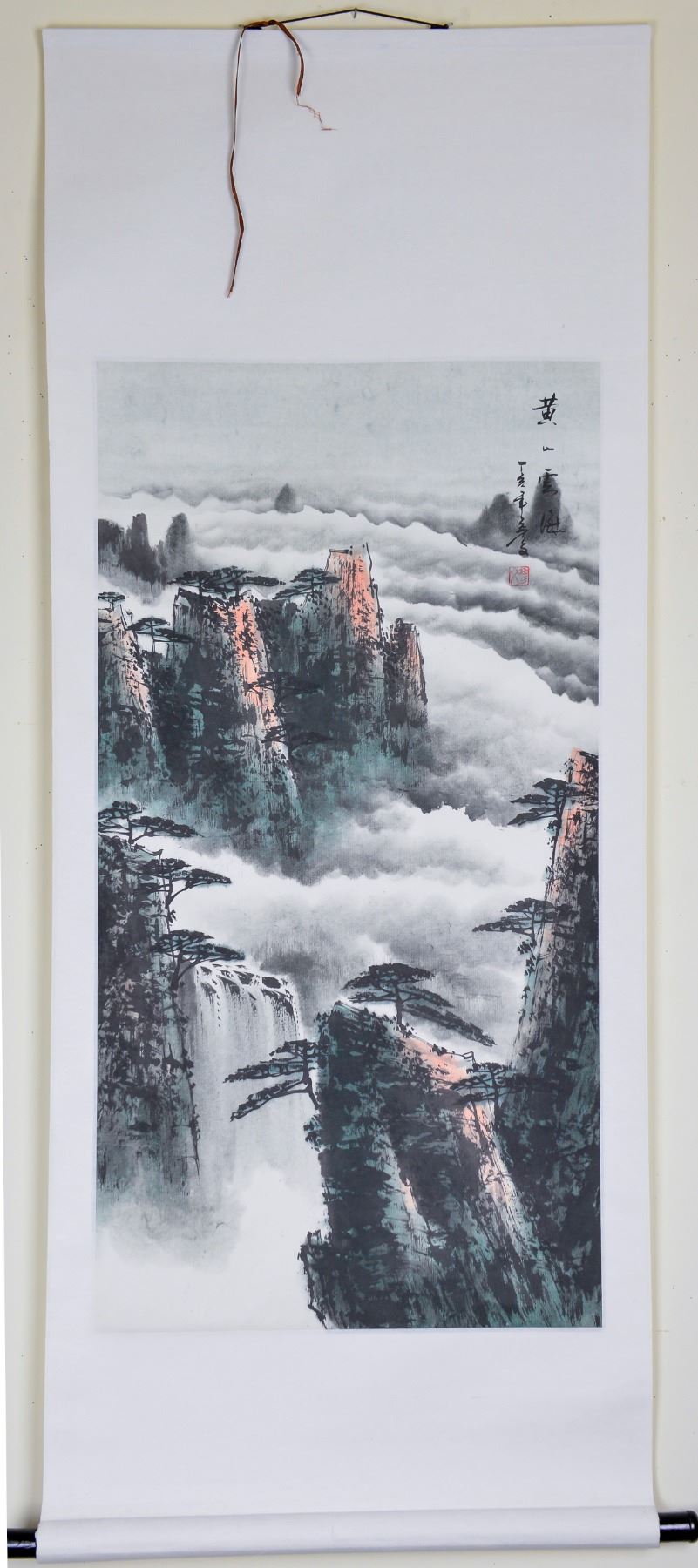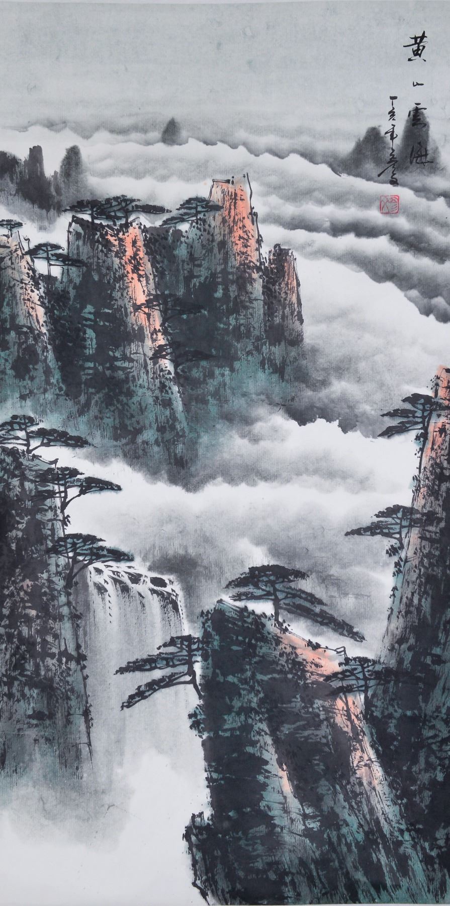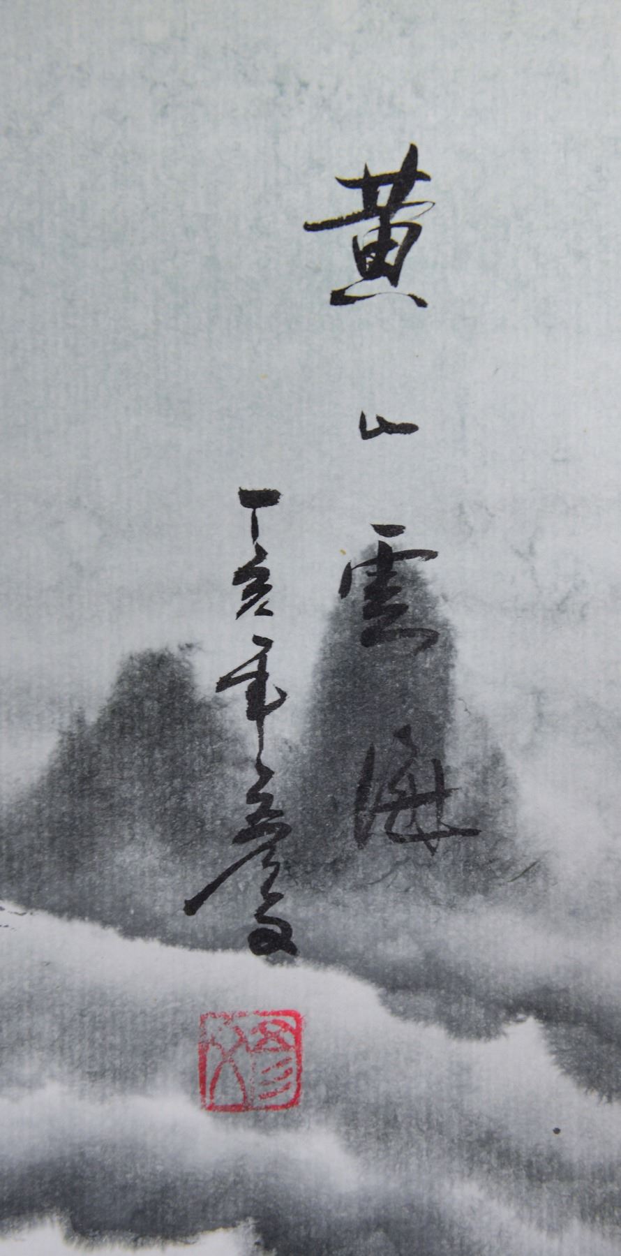 Ink and watercolor on paper, hanging scroll, featuring mountainous landscape, signed Yanfu, inscribed with one artist seal, 87 x 45.25 cm