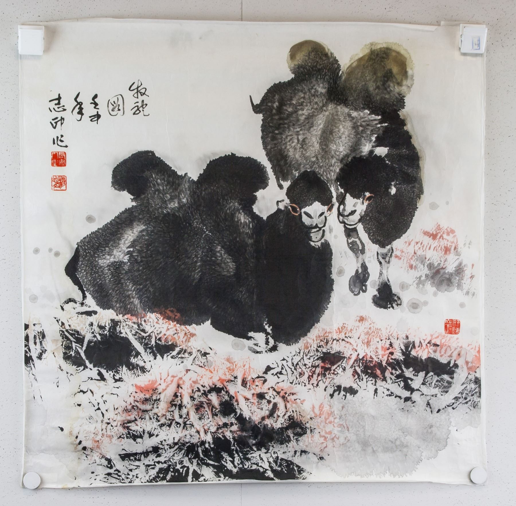 Ink and watercolor on paper. Featuring pair of camels. Signed Yang Zhi (b.1962, Chinese), inscribed with 3 artist seals. 69 x 69 cm. PROVENANCE: T. Ng Collection Toronto.